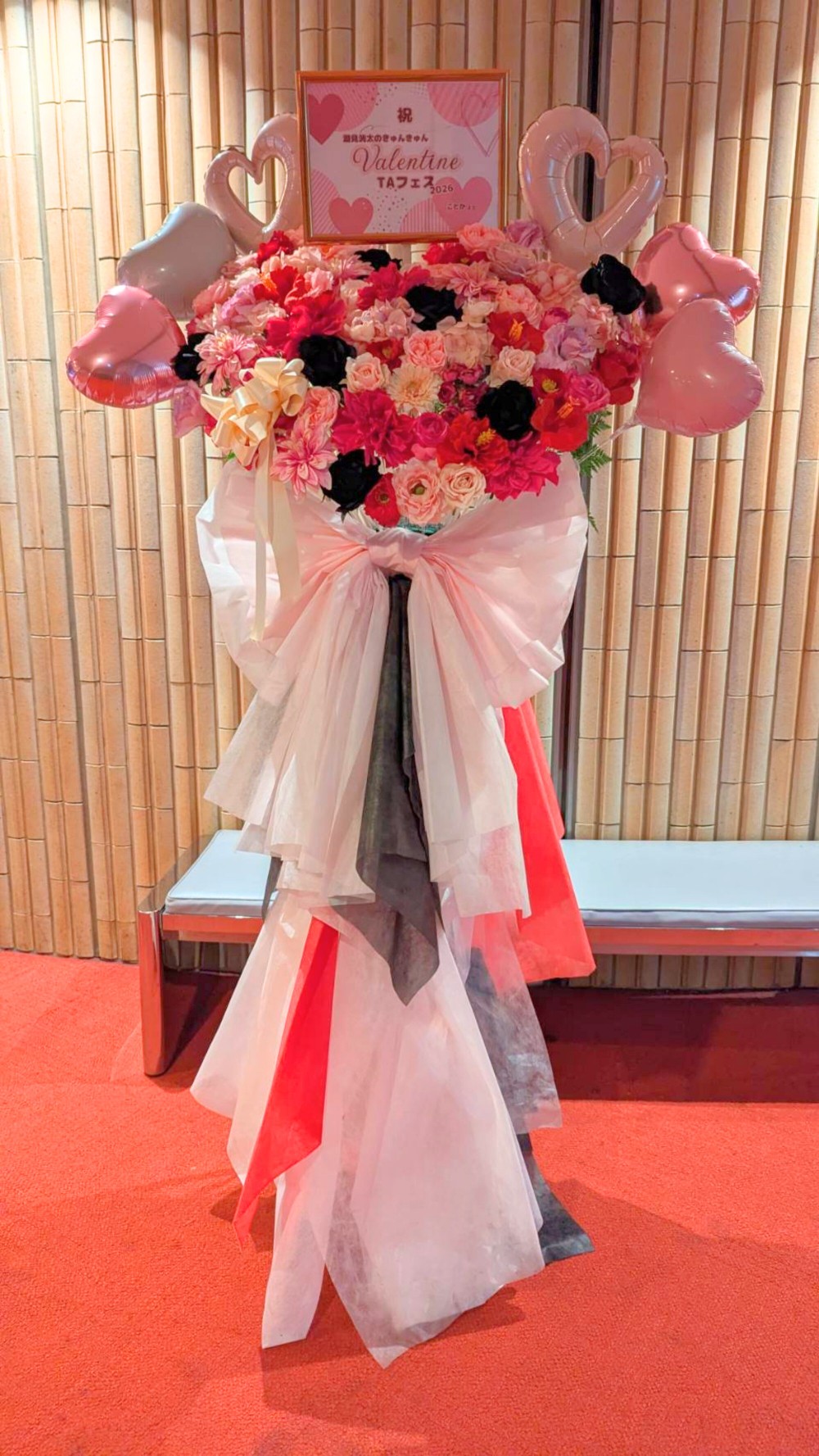 #35,000円-50,000円 #公演・出演祝い #フラワーデザイナー金巻 #ピンク #スタンド花 #推し花 #SHIDAXカルチャーホール #潮見洸太 #俳優 #オリジナル立て札 #バルーン #ハート型