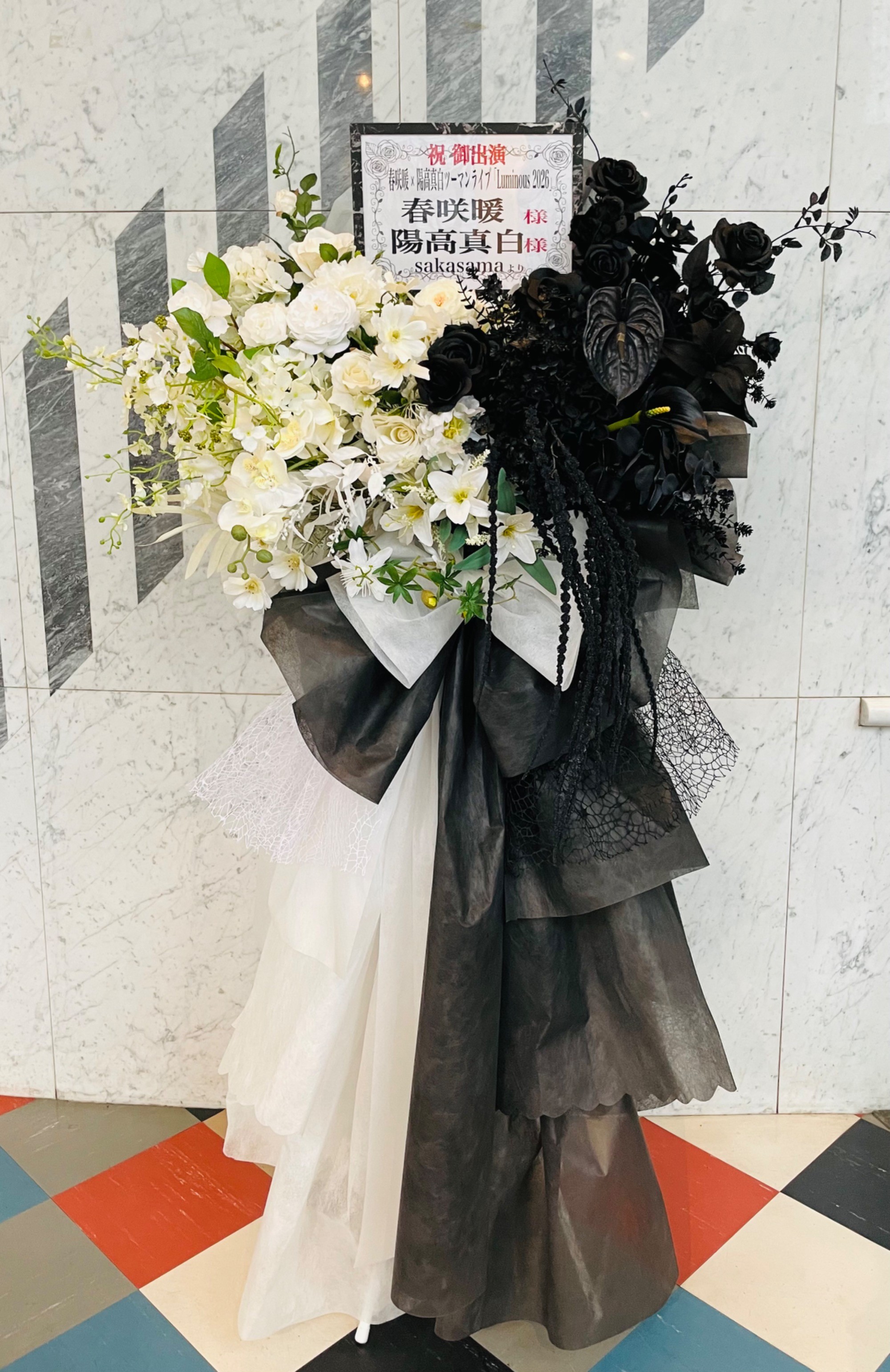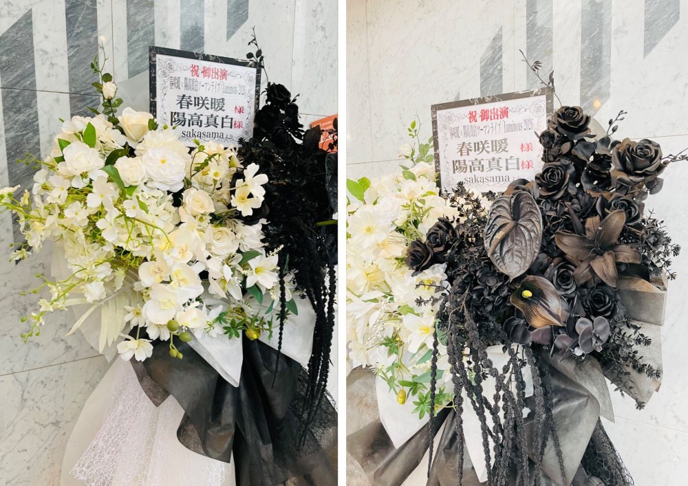 #20,000円-30,000円 #公演・出演祝い #フラワーデザイナー大川 #白 #スタンド花 #推し花 #新宿ReNY #春咲暖 #陽高真白 #声優 #ツートンカラー #オリジナル立て札 #シック