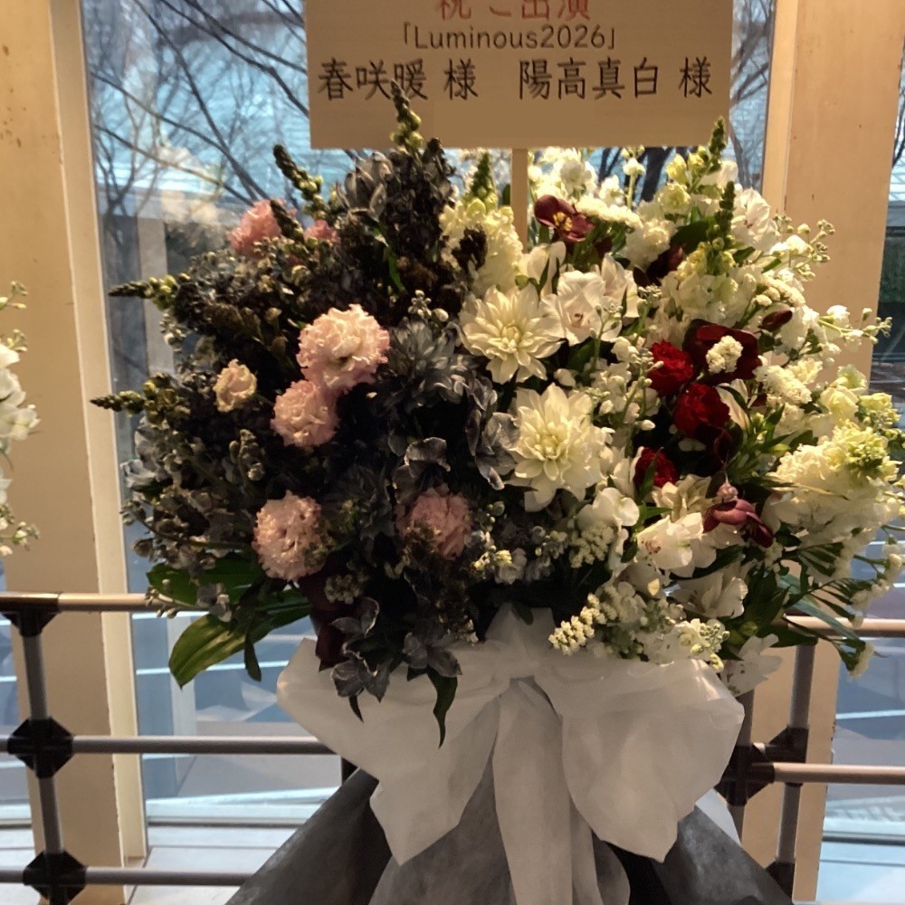 #20,000円-30,000円 #公演・出演祝い #フラワーデザイナー近藤 #白 #スタンド花 #推し花 #新宿ReNY #春咲暖 #陽高真白 #声優 #ツートンカラー #シック