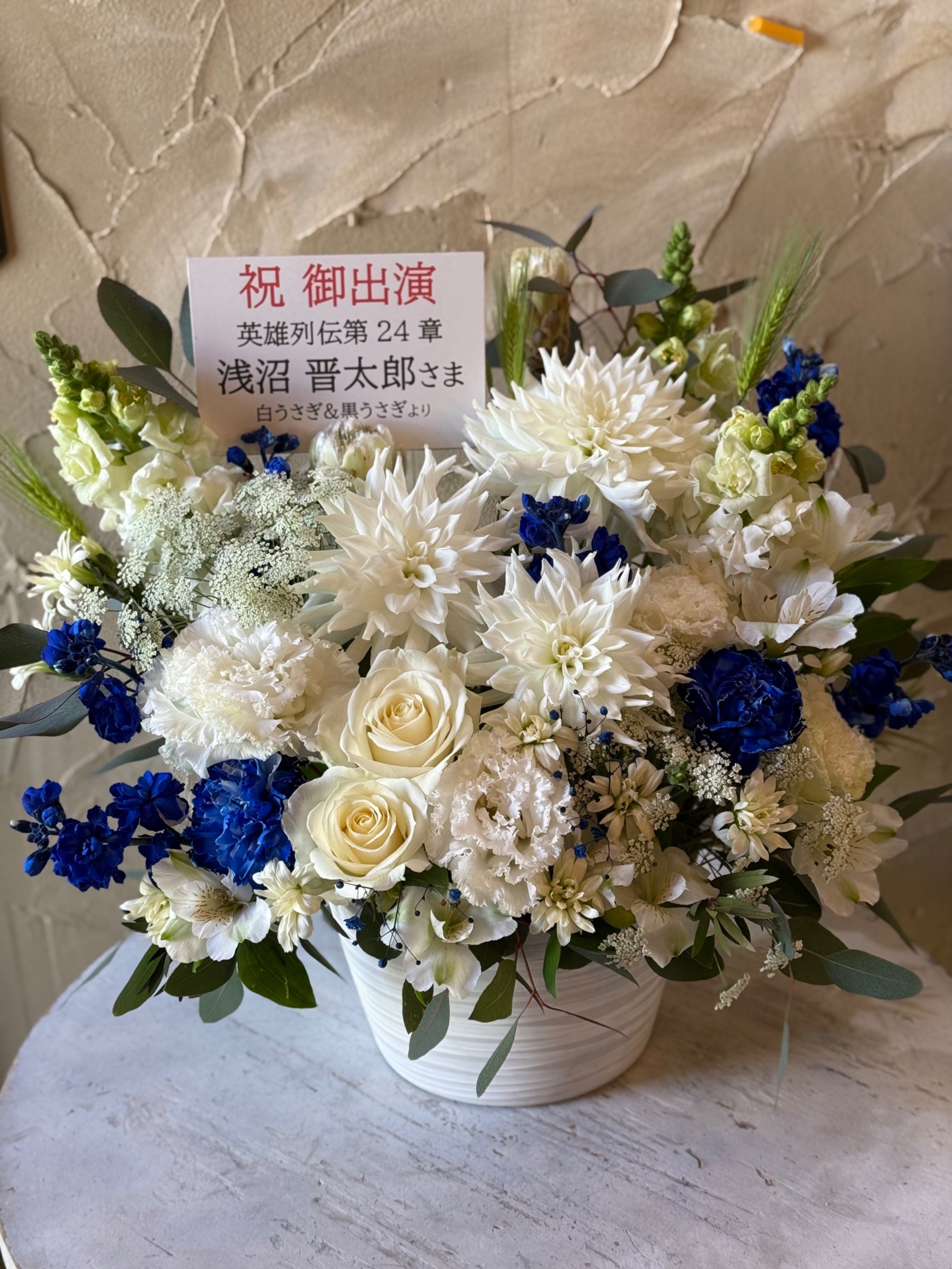 #10,000円 #公演・出演祝い #フラワーデザイナー牧 #白 #楽屋花 #推し花 #大阪日本橋 インディペンデントシアター2nd #浅沼晋太郎 #俳優 #声優