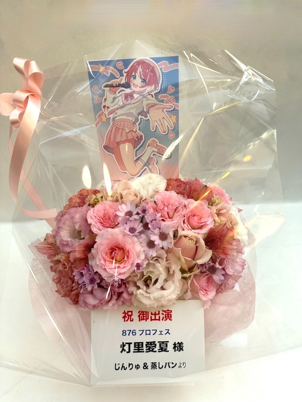 ライブの成功と灯里愛夏さんの持つかわいさとを、お花を通して伝えたくて、このお花でステージに立つ愛夏さんを応援できたらと思いました。