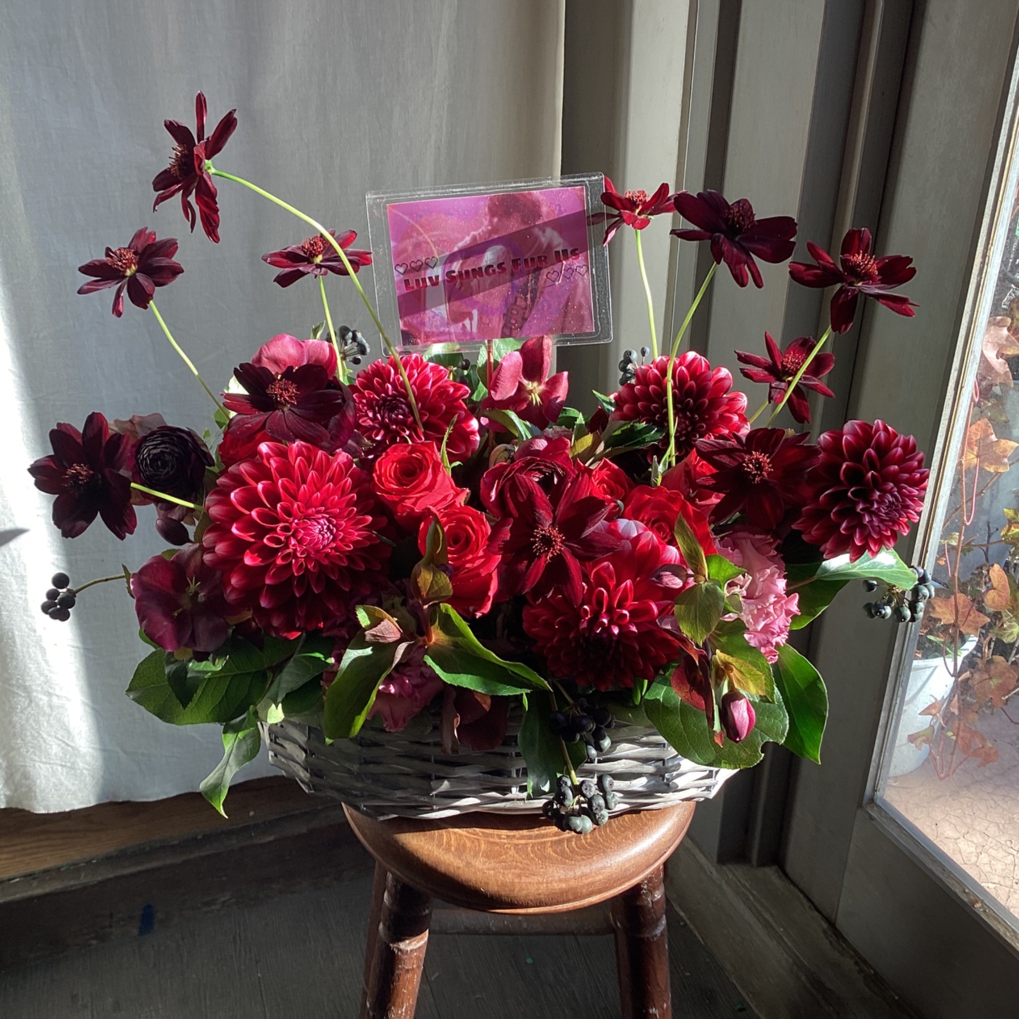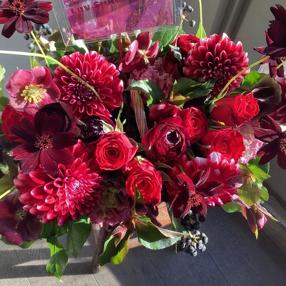 #10,000円 #公演・出演祝い #フラワーデザイナー近藤 #赤 #楽屋花 #推し花 #渋谷Malcolm #キャメ #オリジナル立て札