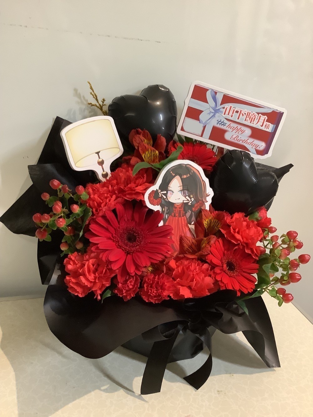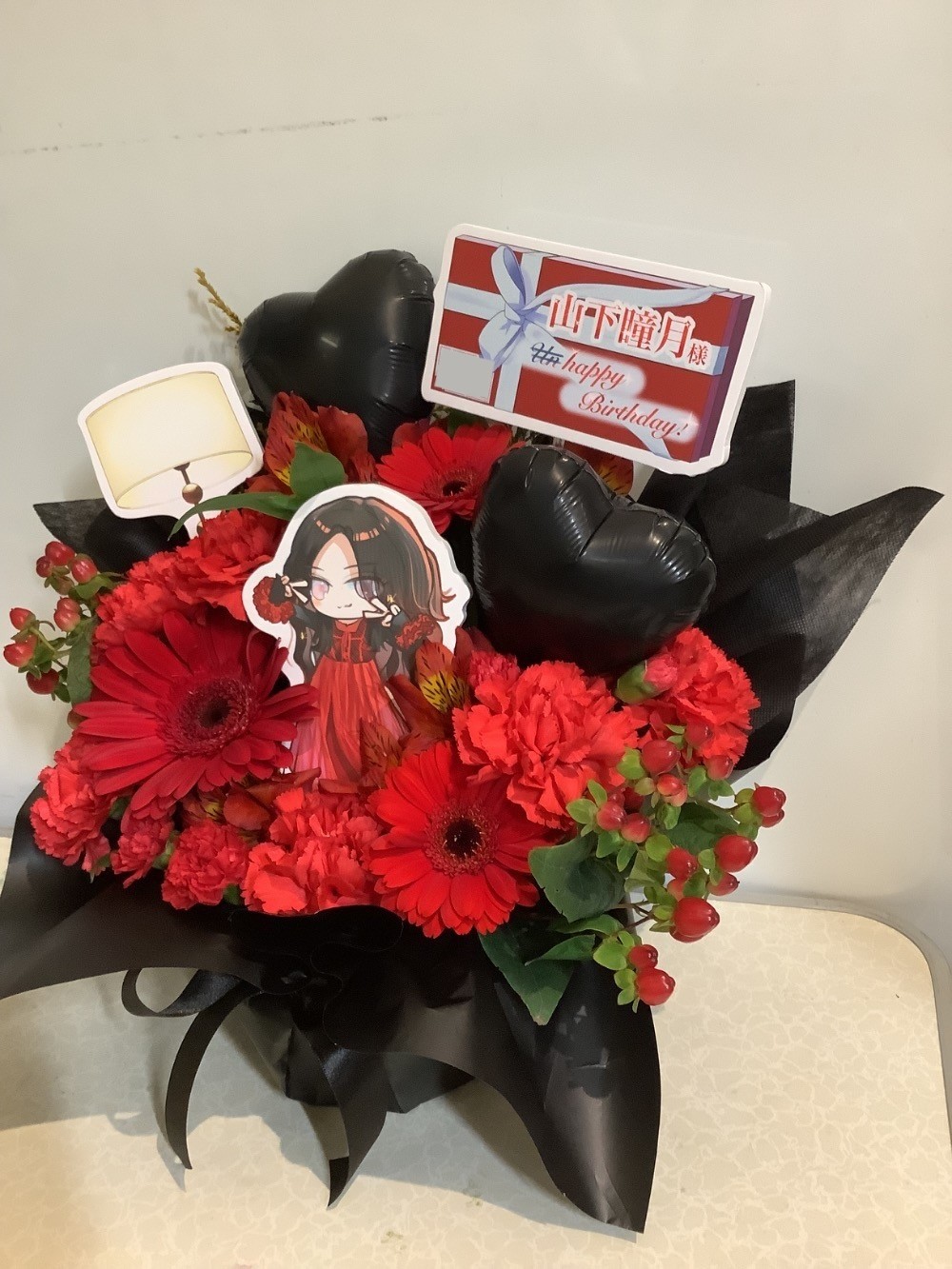 MVの赤と黒の衣装のイラストパネルを用意する予定だったため、お花もそれに合わせた色味を希望しました。