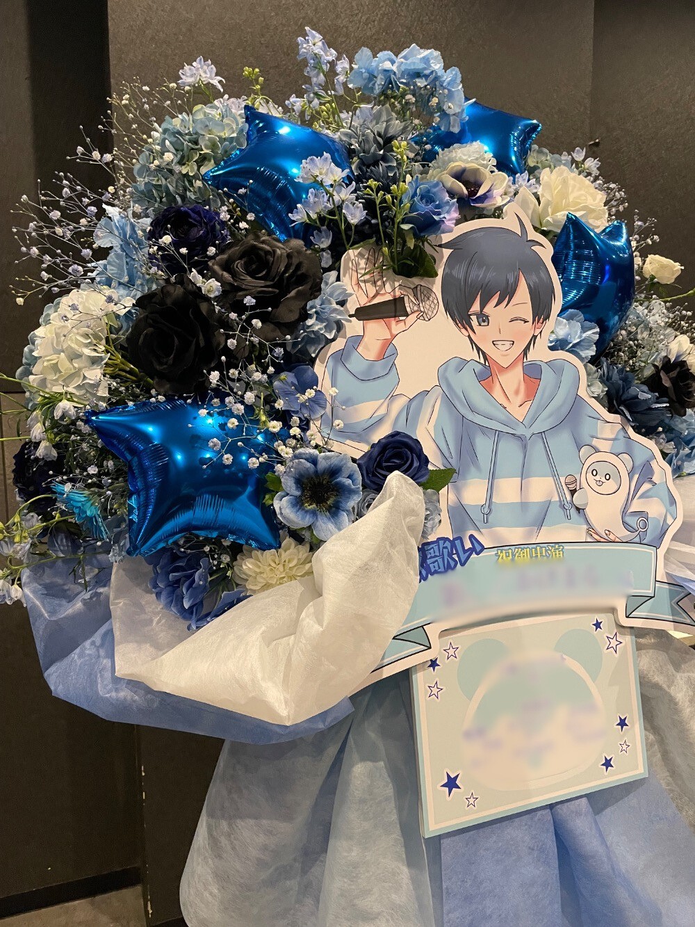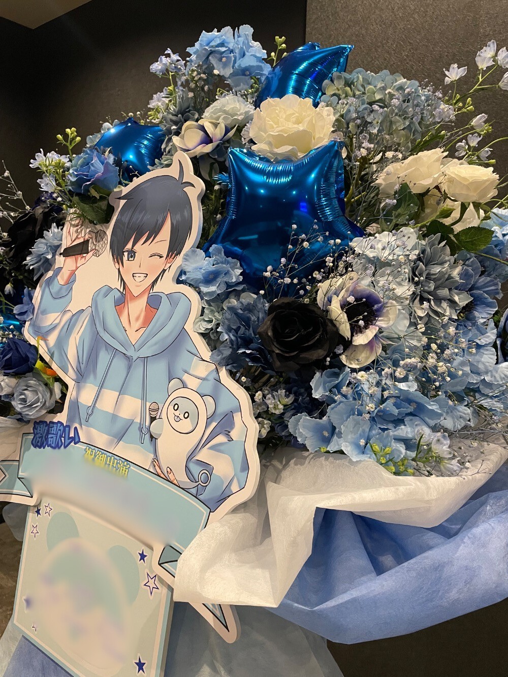 #35,000円-50,000円 #公演・出演祝い #フラワーデザイナー大川 #水色 #スタンド花 #推し花 #バルーン #パネル装飾 #オリジナル立て札 #花束風フラスタ
