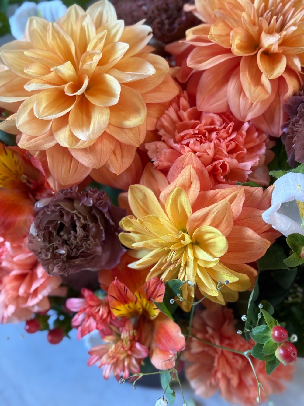 完成したお花は、カンパニュラという白いお花がアクセントになっていて、可愛さもプラスされて、とても素敵に仕上げてくださいました。