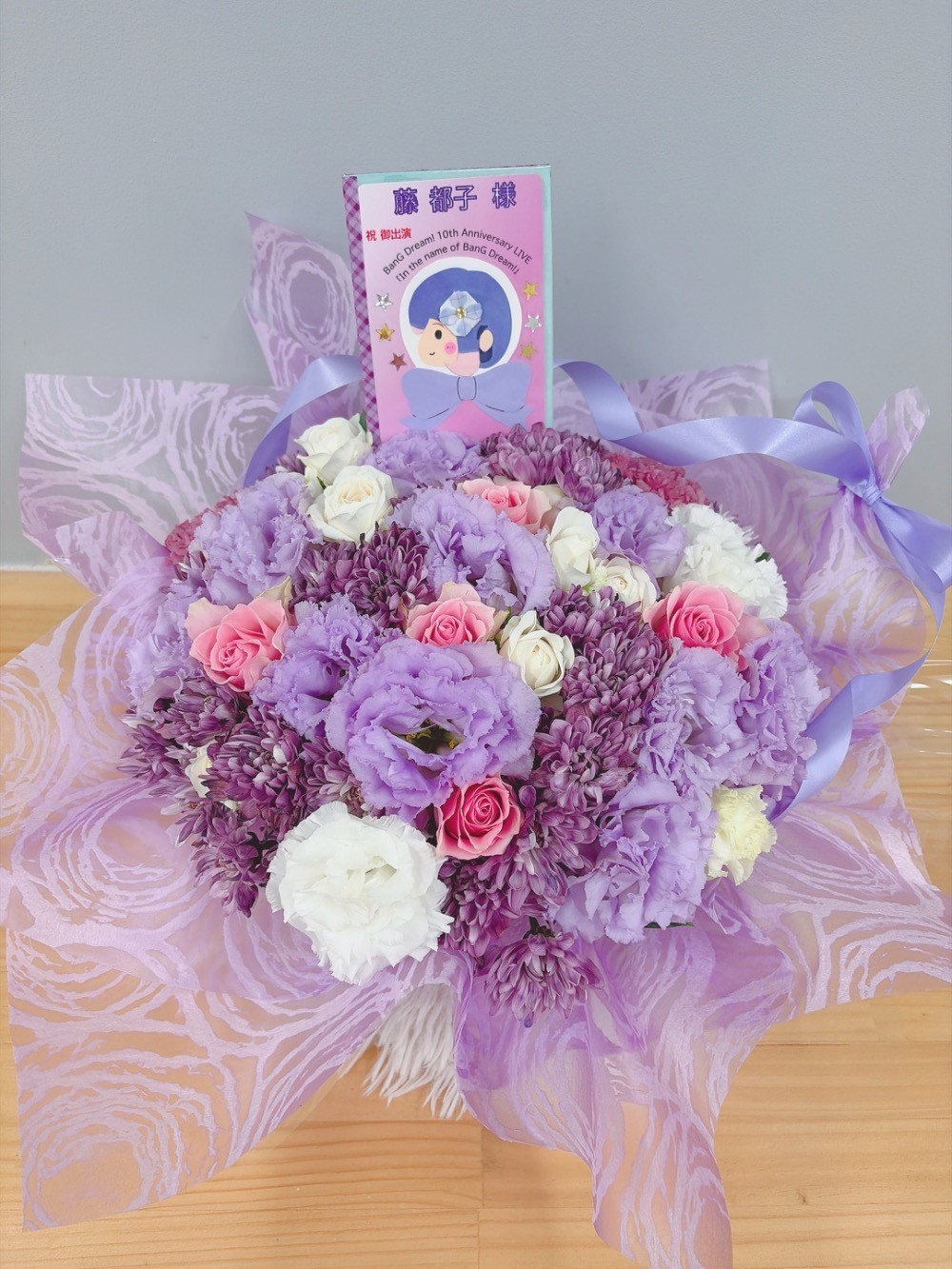 #10,000円 #公演・出演祝い #フラワーデザイナー志村 #紫 #楽屋花 #推し花 #Kアリーナ横浜 #藤都子 #BanG Dream! #夢限大みゅーたいぷ #オリジナル立て札 #リボン