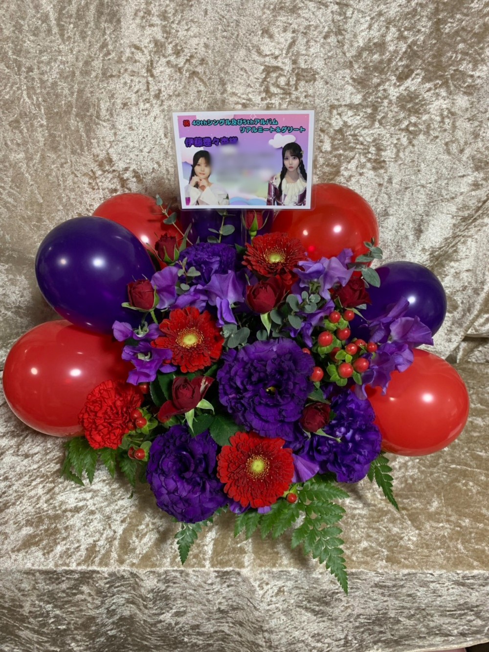 #11,000円-14,000円 #握手会・オンラインお話し会 #フラワーデザイナー金巻 #紫 #楽屋花 #推し花 #幕張メッセ #伊藤理々杏 #乃木坂46 #アイドル #リアルミート&グリート #オリジナル立て札