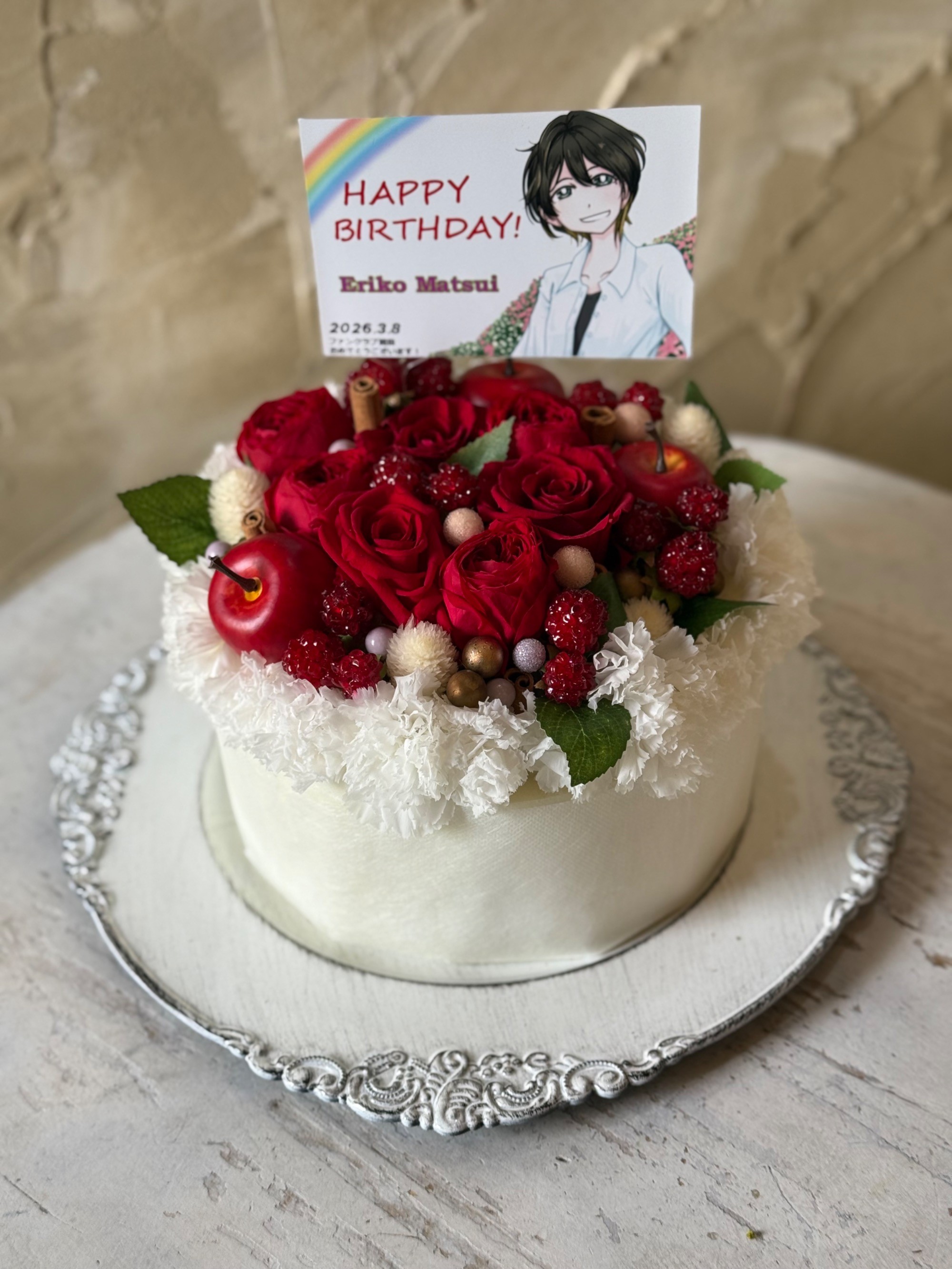 #20,000円-30,000円 #生誕イベント・推しの誕生日 #フラワーデザイナー牧 #白 #プリザーブドフラワー #楽屋花 #推し花 #松井恵理子 #声優 #歌手 #オリジナル立て札 #フラワーケーキ