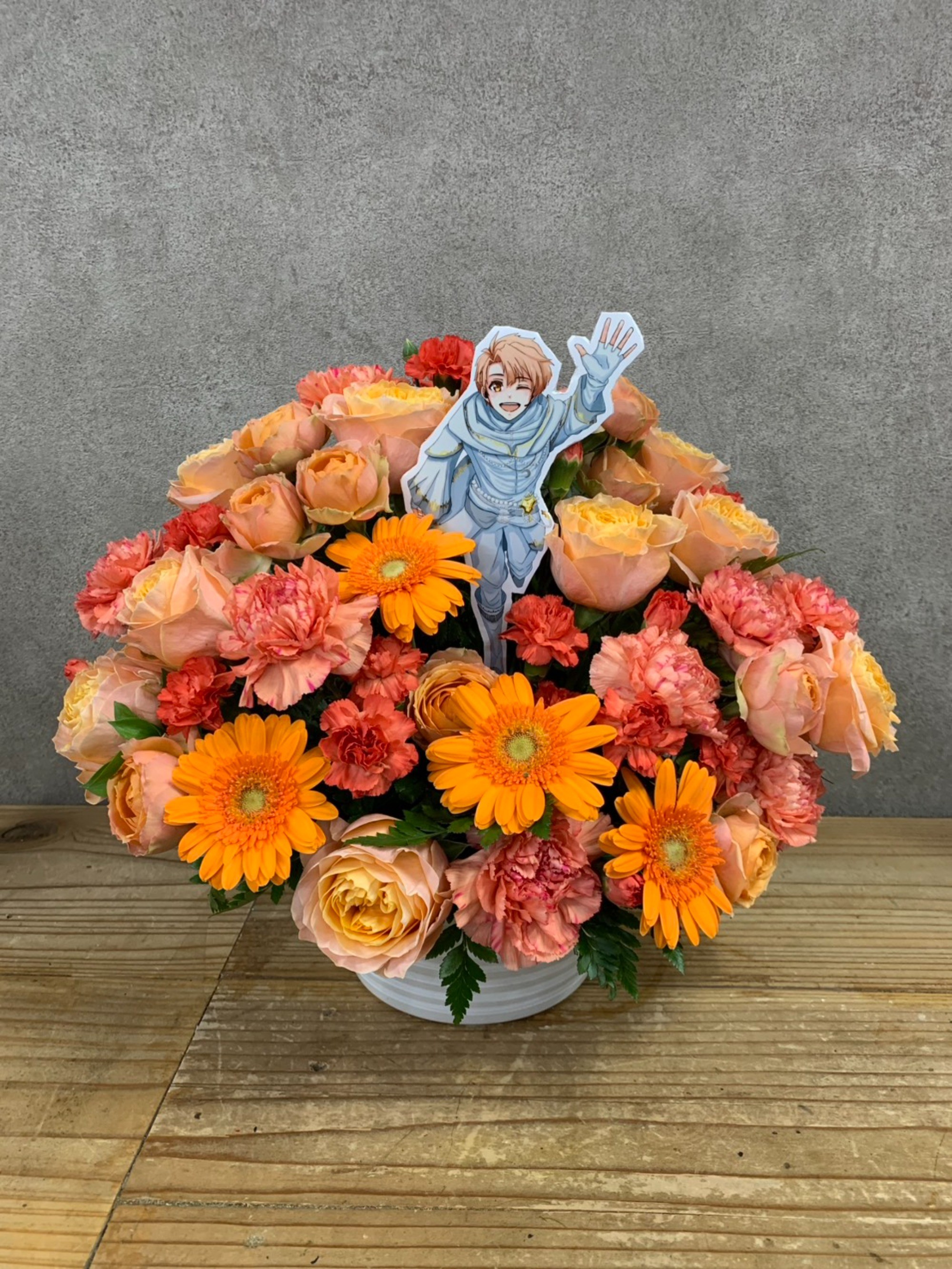和泉三月さんがオレンジを見てファンのことを思い出すように、そして私たちファンがオレンジを見て和泉三月さんを思い出すようなお花を注文いたしました。