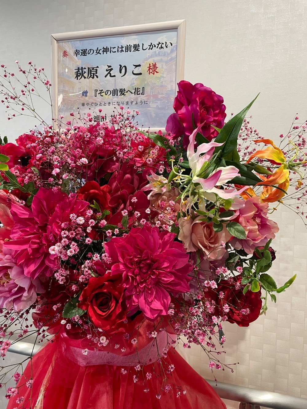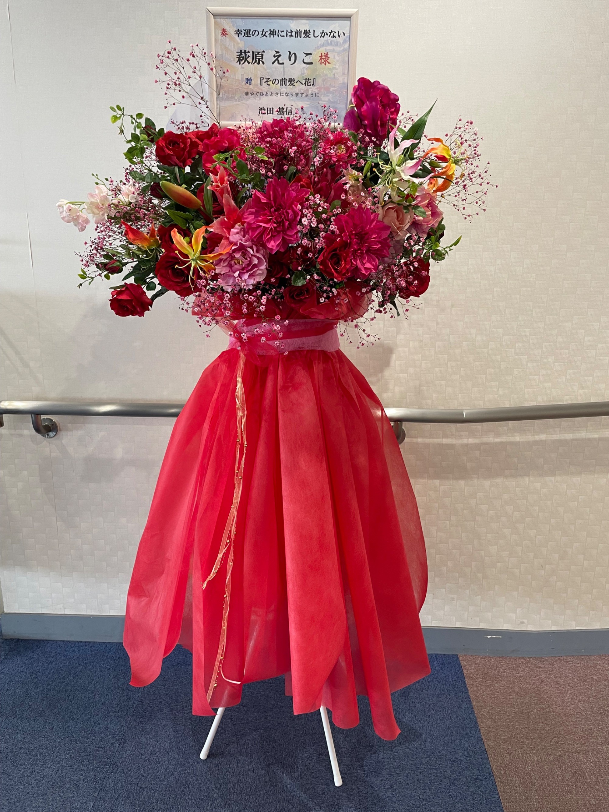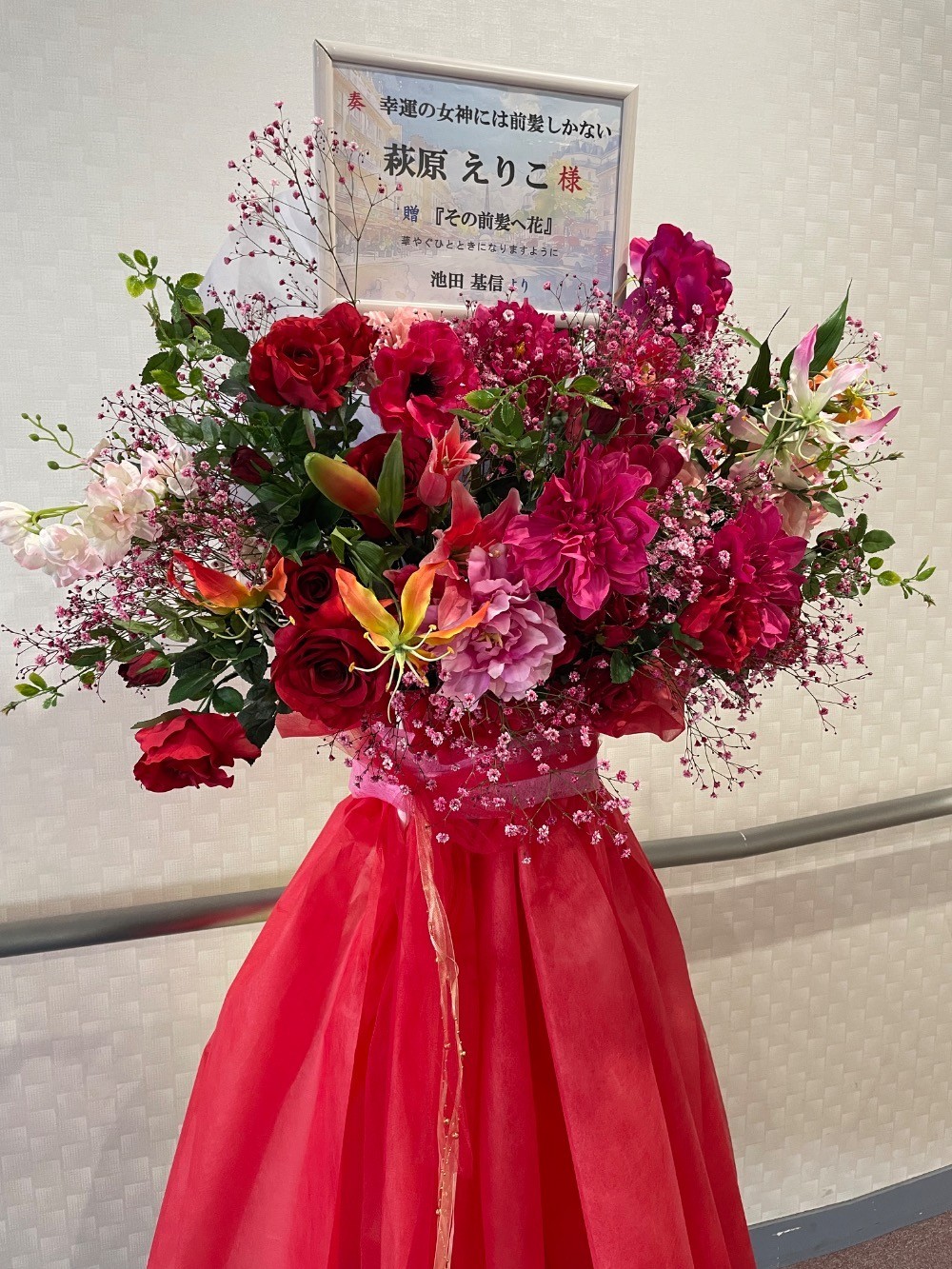 #20,000円-30,000円 #公演・出演祝い #フラワーデザイナー大川 #赤 #スタンド花 #推し花 #北とぴあ #萩原えりこ #オリジナル立て札