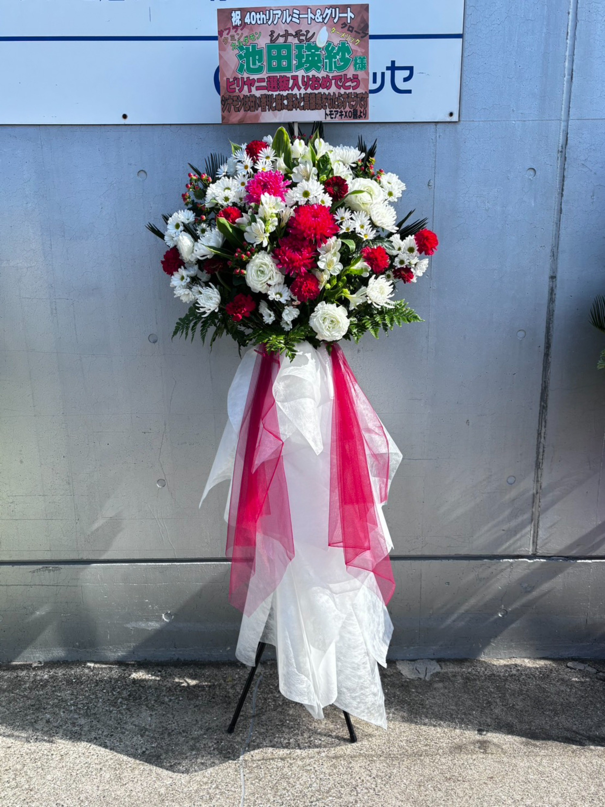 #20,000円-30,000円 #握手会・オンラインお話し会 #フラワーデザイナー金巻 #白 #スタンド花 #推し花 #幕張メッセ #池田瑛紗 #アイドル #乃木坂46 #リアルミート&グリート #オリジナル立て札