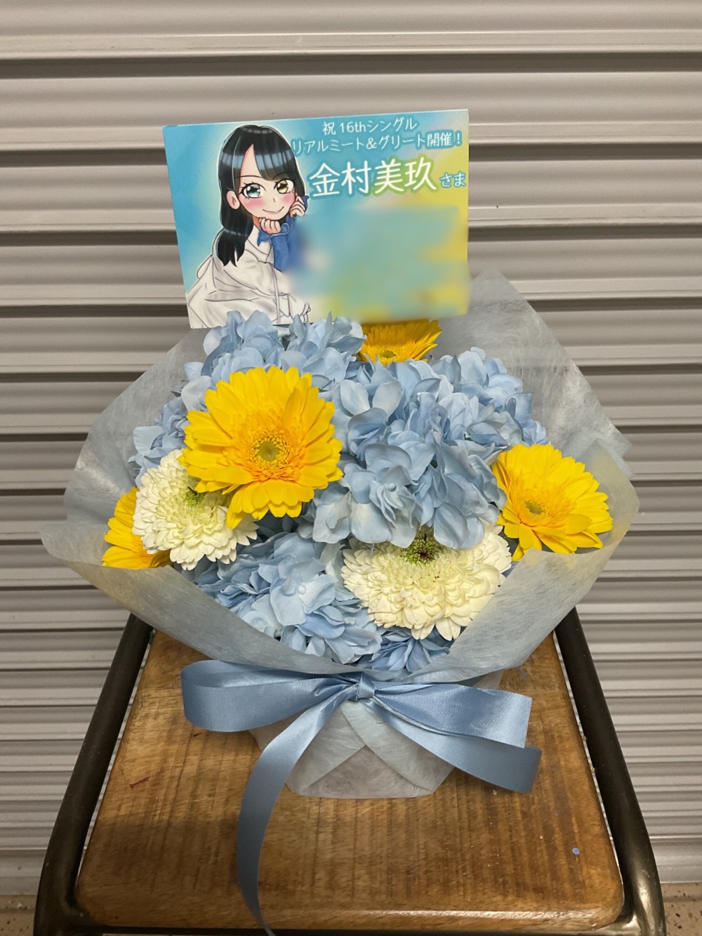 #6,000円-9,000円 #握手会・オンラインお話し会 #フラワーデザイナー杉浦 #水色 #楽屋花 #推し花 #京都パルスプラザ #金村美玖 #日向坂46 #アイドル #リアルミート&グリート #オリジナル立て札 #花束 #リボン