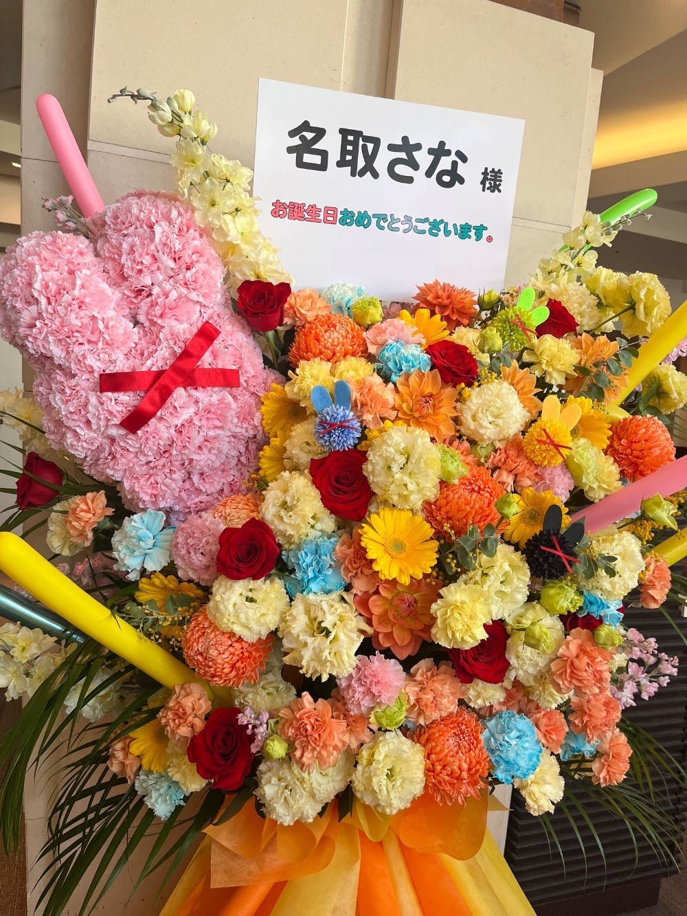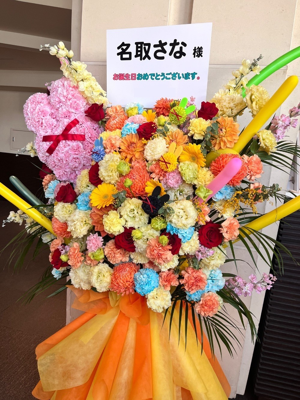 #120,000円 #生誕イベント・推しの誕生日 #フラワーデザイナー宮崎 #オレンジ #スタンド花 #推し花 #チネチッタ #名取さな #Vtuber #オリジナル立て札 #モチーフ #バルーン