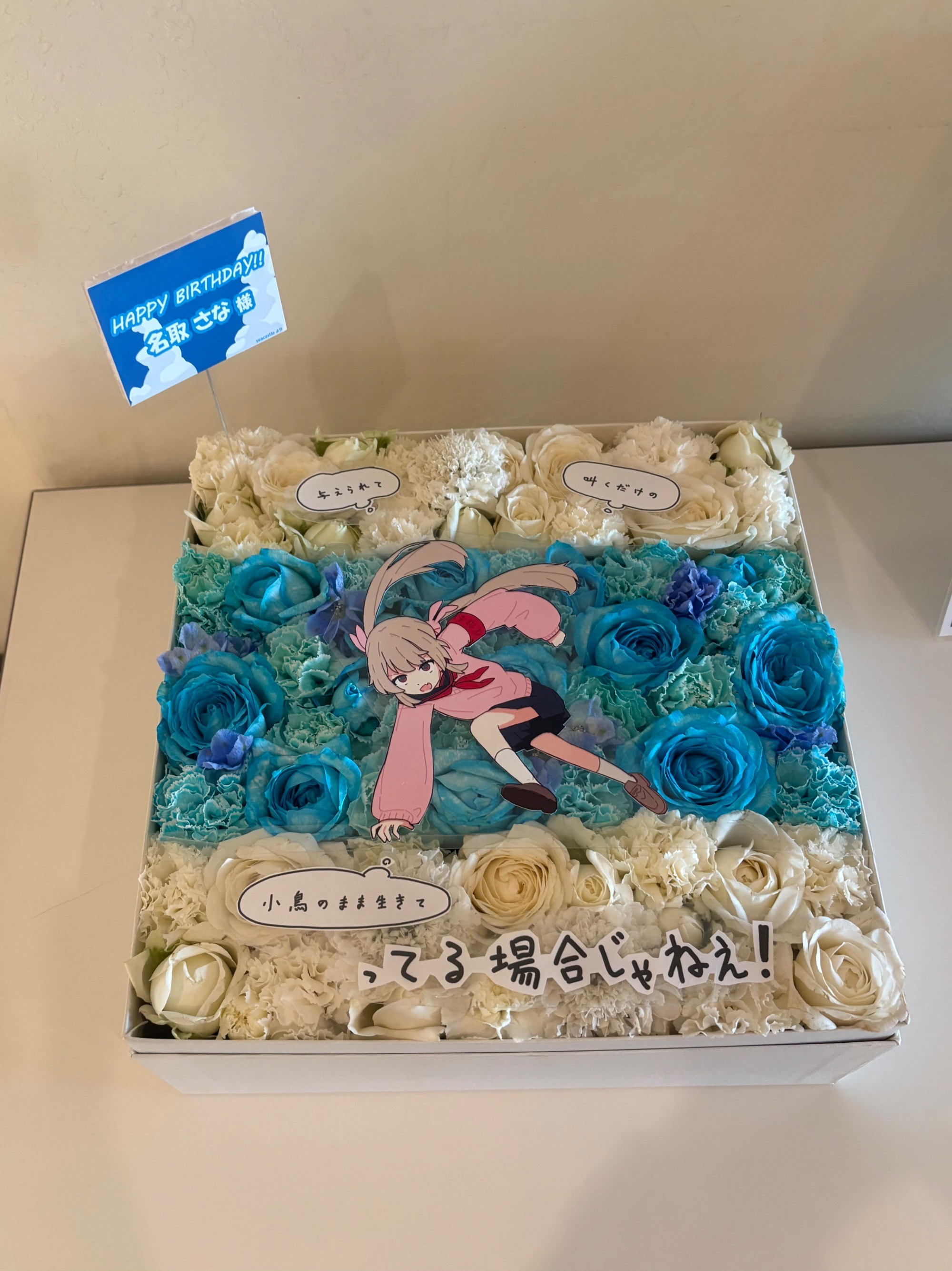 #20,000円-30,000円 #生誕イベント・推しの誕生日 #フラワーデザイナー前澤 #水色 #楽屋花 #推し花 #チネチッタ #名取さな #Vtuber #ボックスフラワー #オリジナル立て札