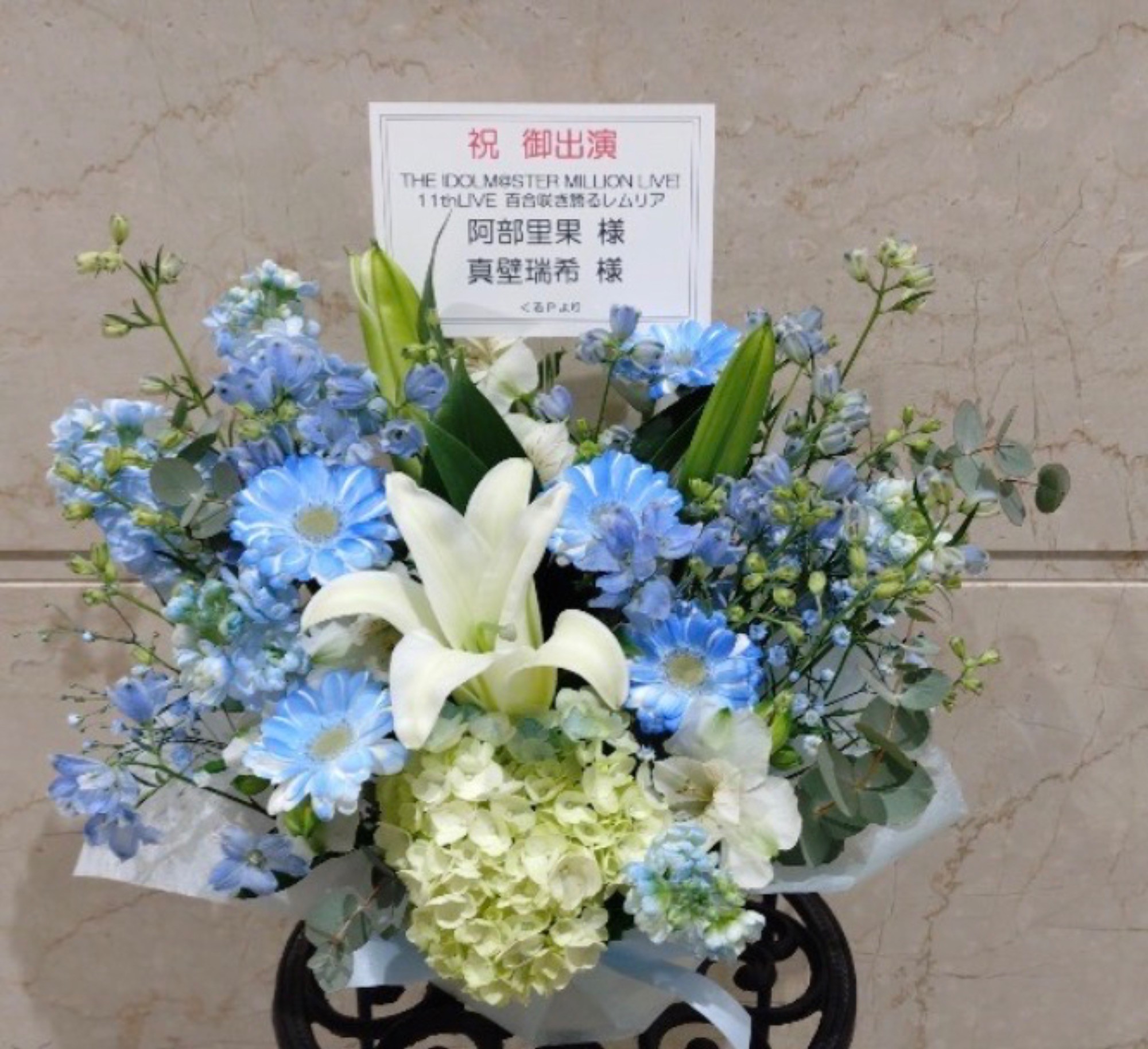 北九州メッセ 公演 [THE IDOLM@STER MILLION LIVE! 11thLIVE] 阿部里果様・真壁瑞希様 ご出演祝い花・楽屋花