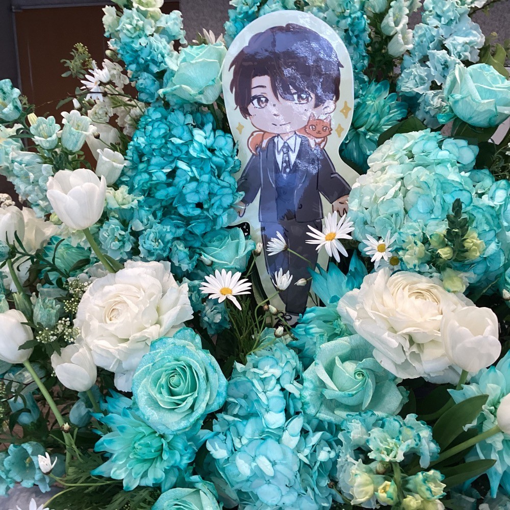 ご本人様の初ファンミーティングではありますので、ご本人様の優しさとウェルカムな雰囲気を再現していただきたかったです。公式画像のカラーを合わせて緑系のお花を頼んでいました。