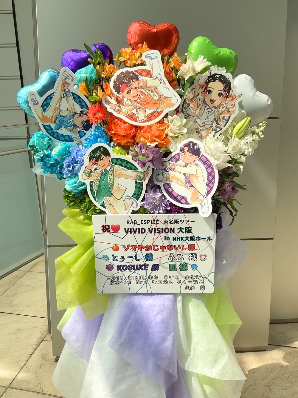 #35,000円-50,000円 #公演・出演祝い #フラワーデザイナー杉浦 #スタンド花 #推し花 #NHK大阪ホール #リアルアキバボーイズ #ネス #とぅーし #ゾマやかじゃない! #凪 #KOSUKE #カラフル #オリジナル立て札 #パネル装飾 #バルーン