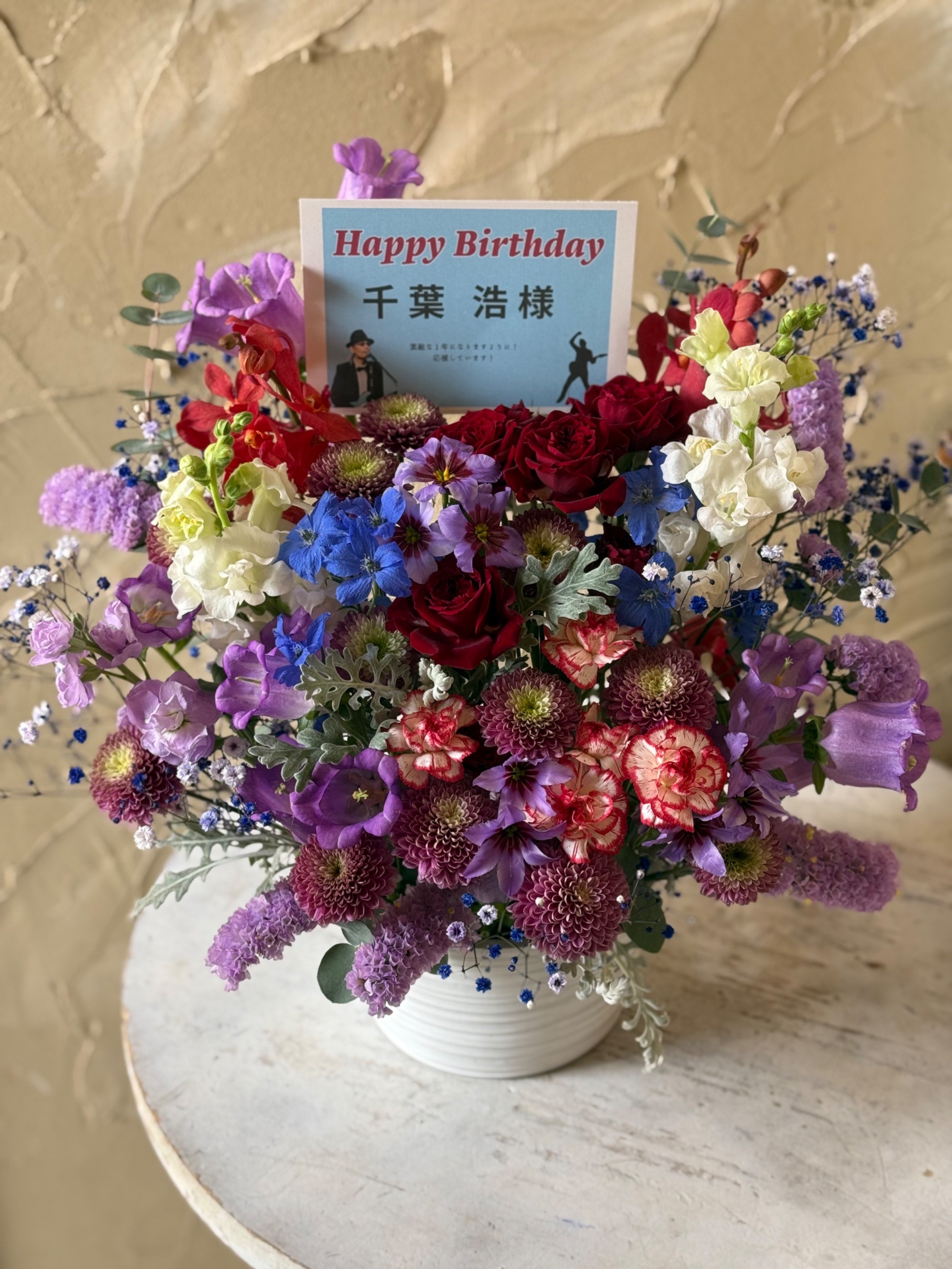 #6,000円-9,000円 #生誕イベント・推しの誕生日 #フラワーデザイナー牧 #楽屋花 #推し花 #ケネディハウス銀座 #千葉浩 #オリジナル立て札 #ボリューム