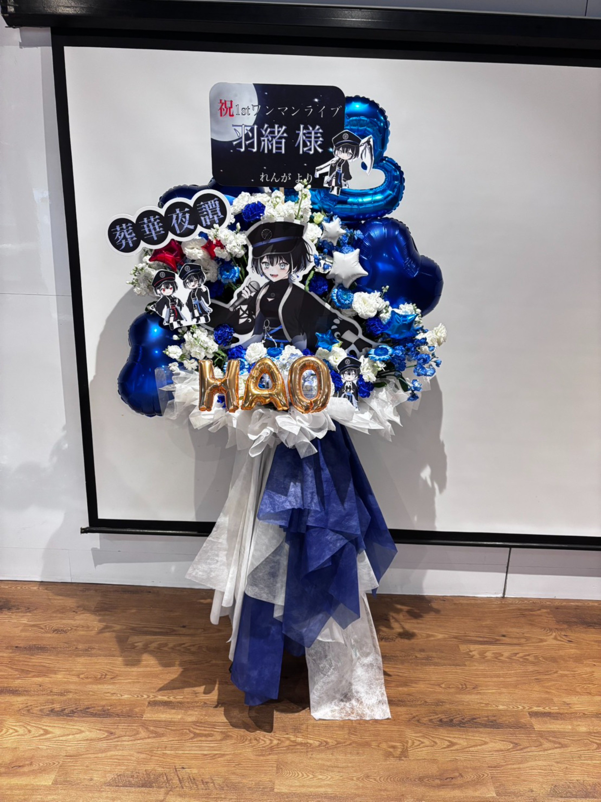 #55,000円 #公演・出演祝い #フラワーデザイナー金巻 #ブルー #スタンド花 #推し花 #秋葉原エンタス #羽緒 #Vtuber #歌手 #オリジナル立て札 #パネル装飾 #バルーン