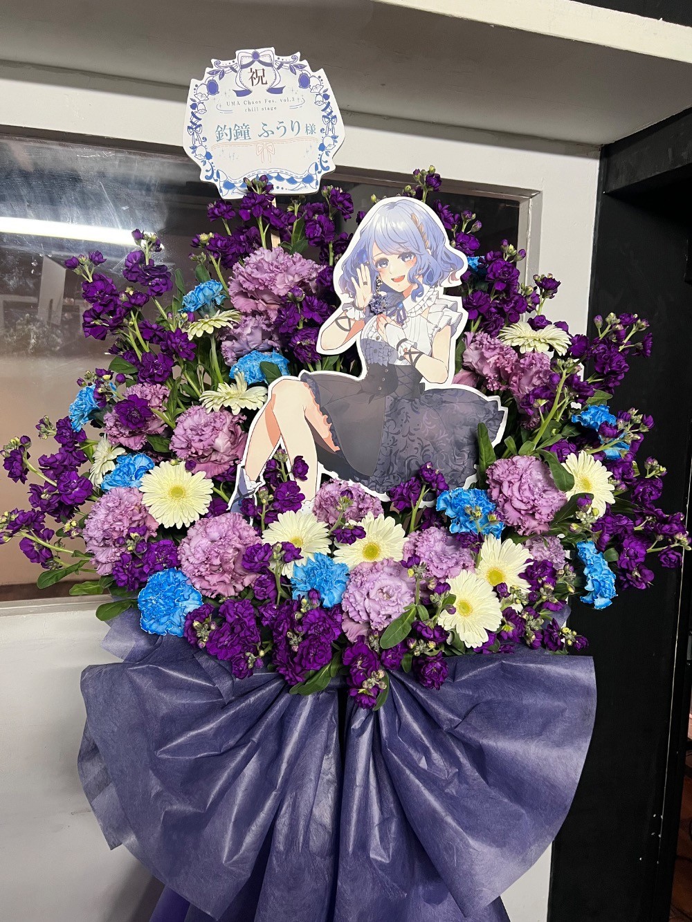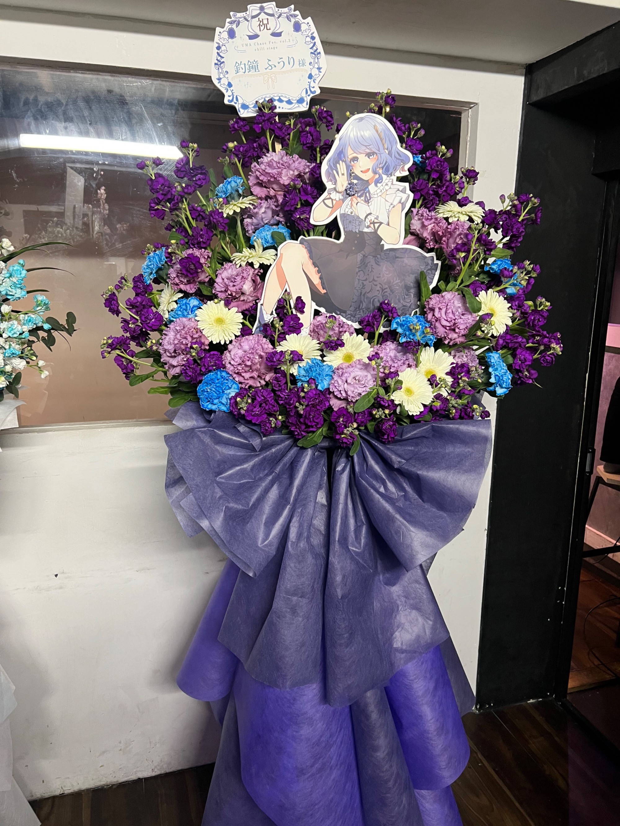 #35,000円-50,000円 #公演・出演祝い #フラワーデザイナー小林 #ブルー #スタンド花 #推し花 #SubculBarなぅ!! #釣鐘ふうり #Vtuber #歌手 #オリジナル立て札 #パネル装飾 #シック