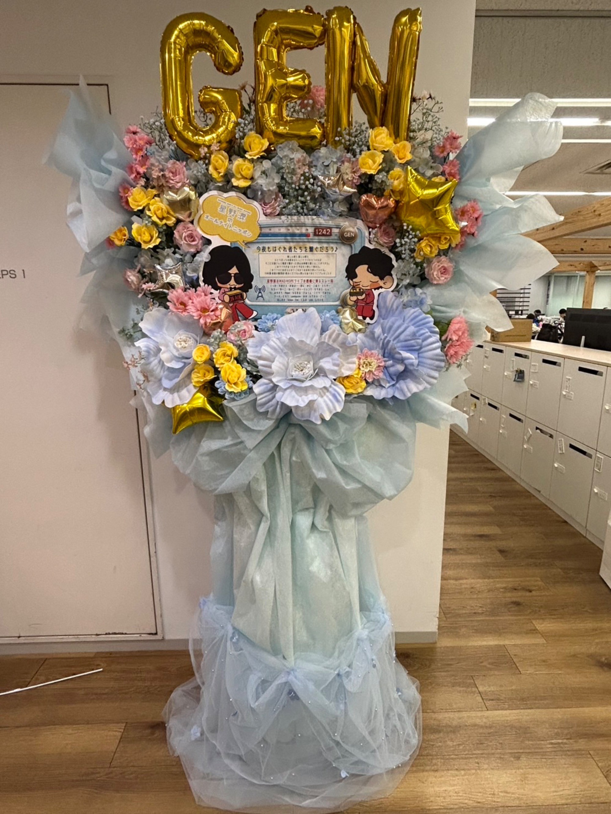 #35,000円-50,000円 #その他公演・出演祝いお祝い #フラワーデザイナー立本 #ブルー #スタンド花 #パネル装飾 #バルーン #ジャイアントフラワー #オリジナル立て札 #ニッポン放送 #星野源 #オールナイトニッポン #ラジオ番組