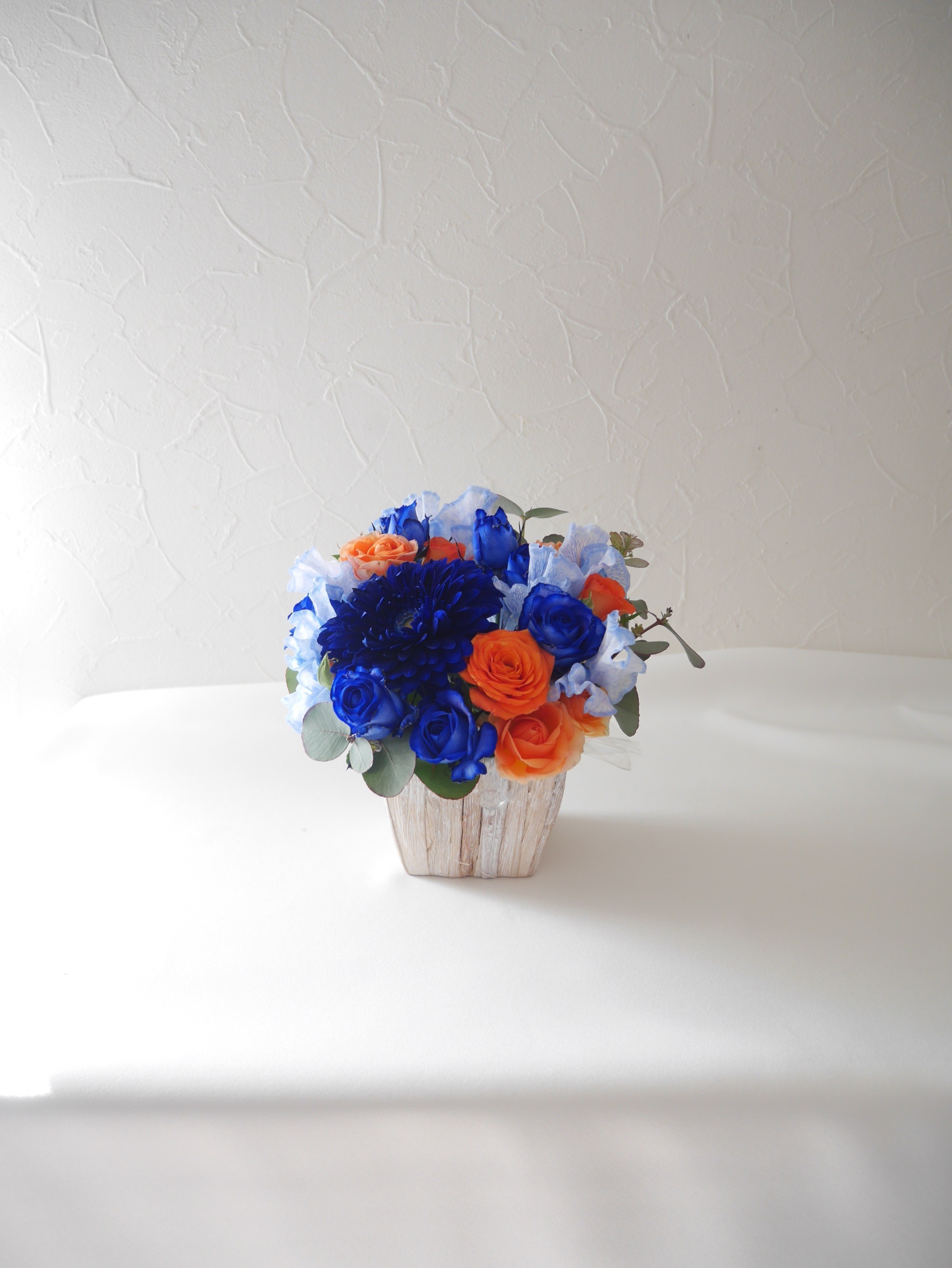 ブルーをメインカラーにオレンジを差し色にプラスしてコンパクトにご用意させて頂きました。