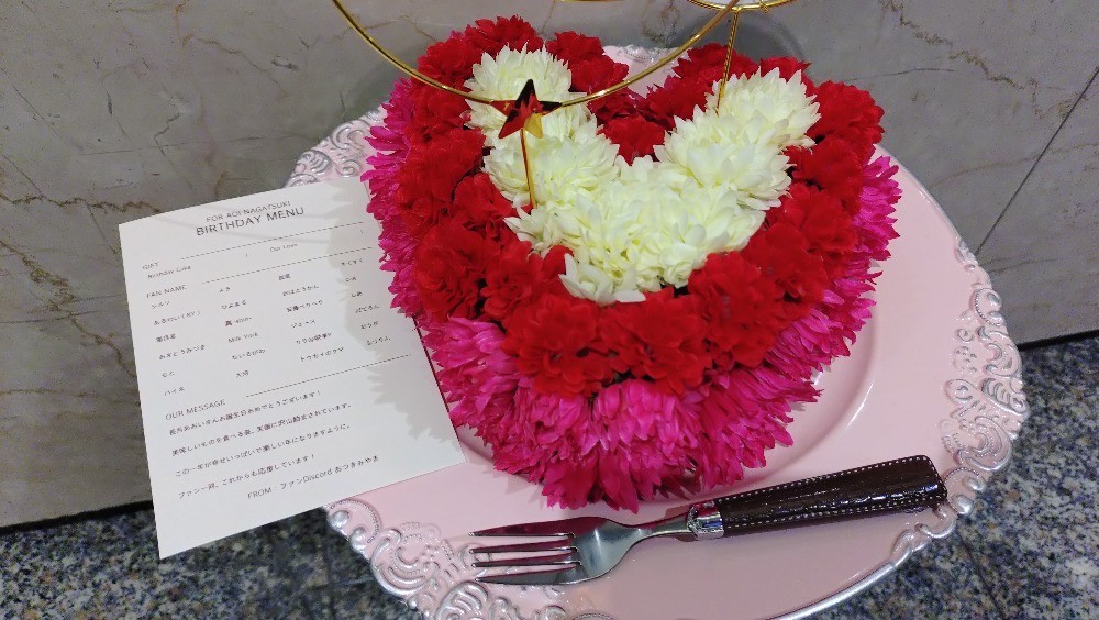 推しへの誕生日祝いということでケーキ風の楽屋花をお願いしました。