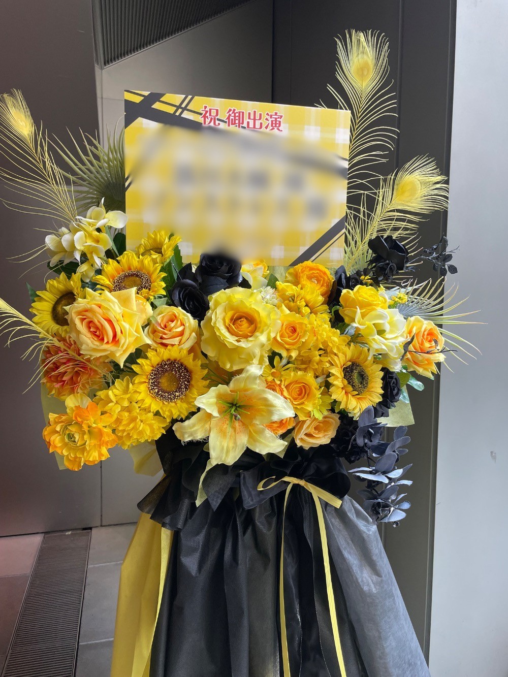 #20,000円-30,000円 #公演・出演祝い #フラワーデザイナー大川 #黄 #スタンド花 #推し花 #オリジナル立て札 #リボン #シック