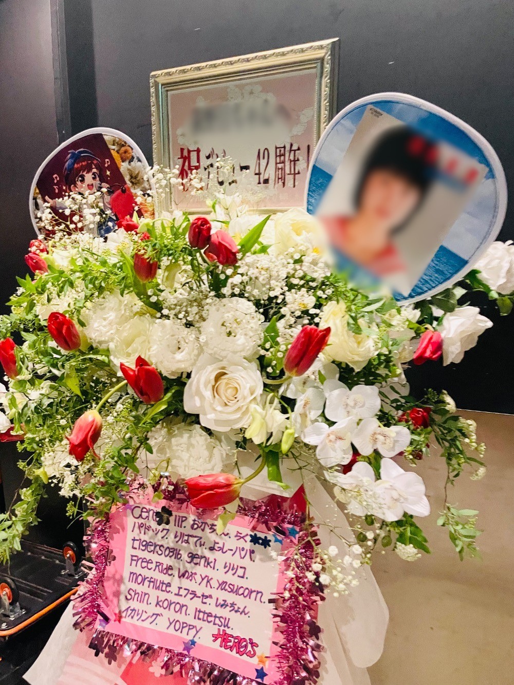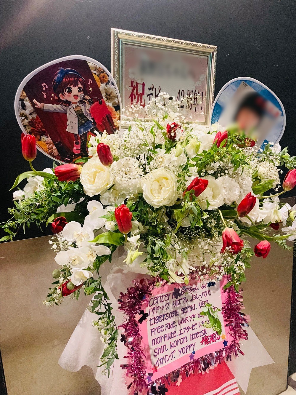 演者様のアルバムジャケットをイメージしておつくりした周年祝い花・スタンド花