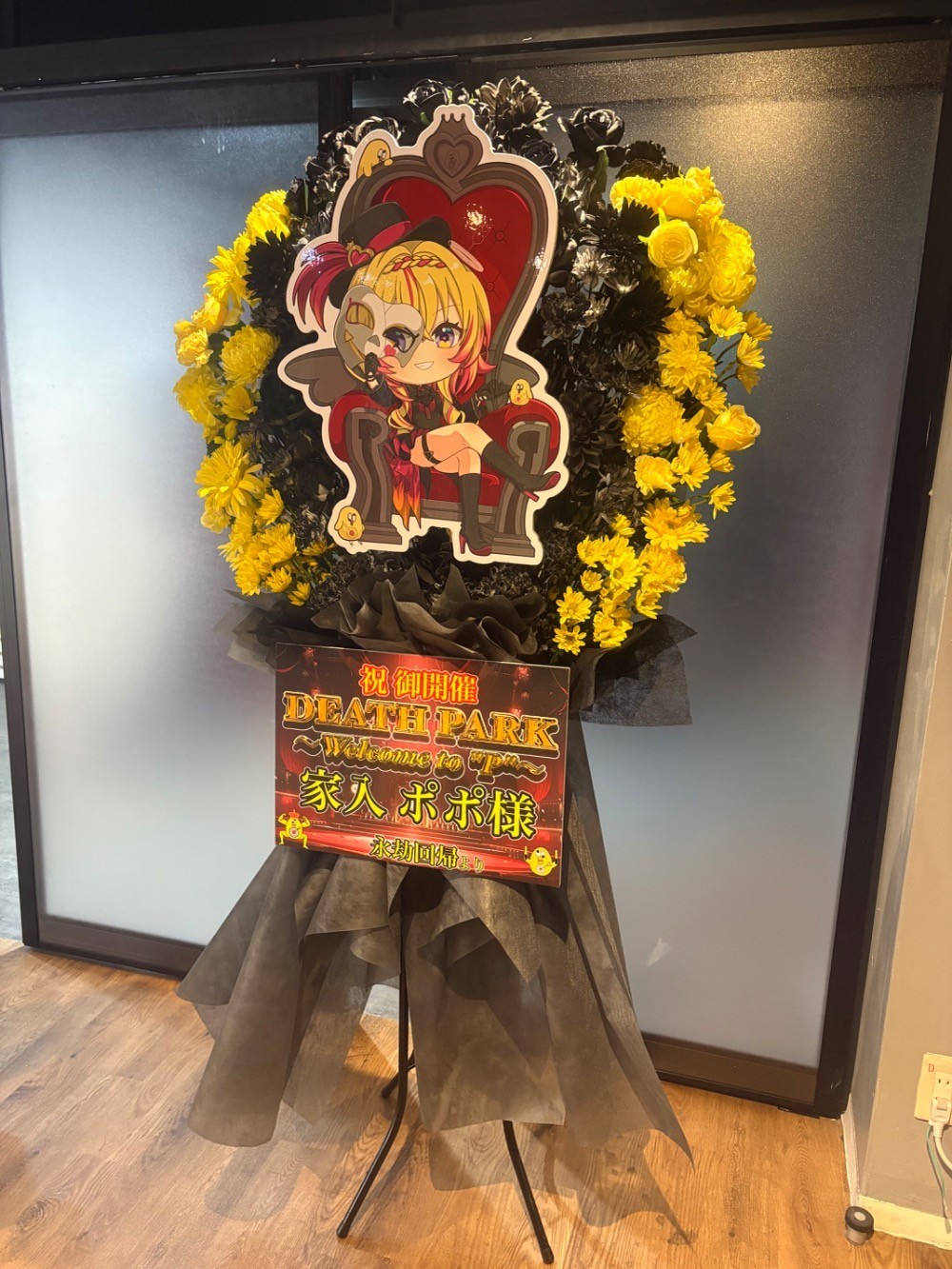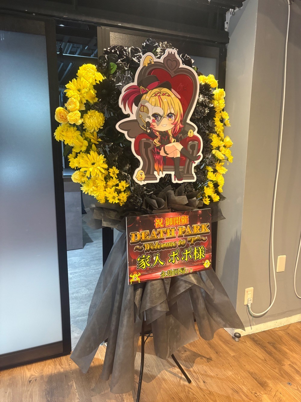 #20,000円-30,000円 #公演・出演祝い #フラワーデザイナー前澤 #黒 #スタンド花 #推し花 #秋葉原エンタス #家入ポポ #Vtuber #オリジナル立て札 #パネル装飾 #ツートンカラー