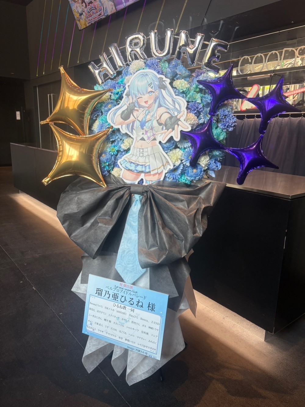 #35,000円-50,000円 #公演・出演祝い #フラワーデザイナー前澤 #水色 #スタンド花 #推し花 #池袋harevutai #瑠乃亜ひるね #Vtuber #オリジナル立て札 #パネル装飾 #バルーン