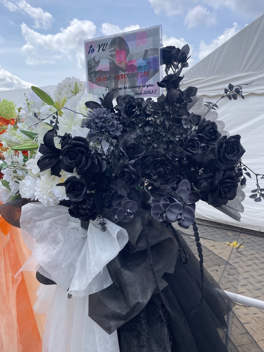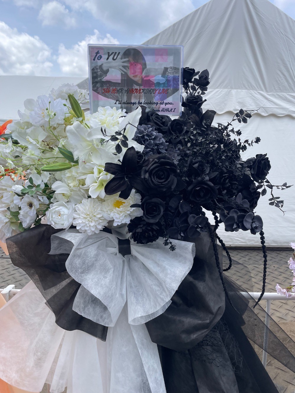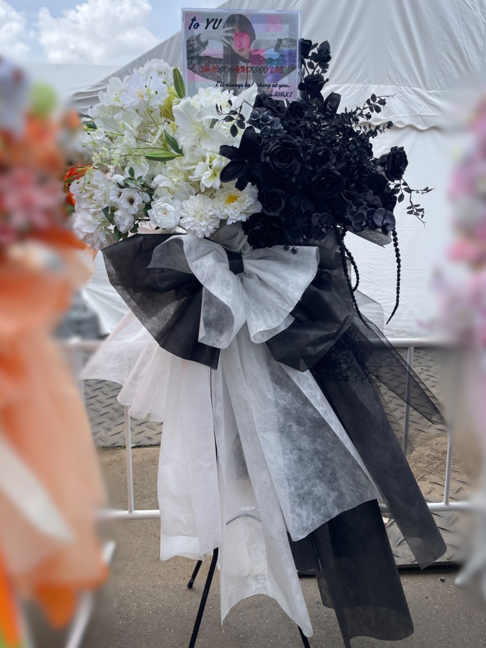 #20,000円-30,000円 #公演・出演祝い #フラワーデザイナー大川 #白 #スタンド花 #推し花 #国立競技場 #村井優 #櫻坂46 #アイドル #ツートンカラー #オリジナル立て札