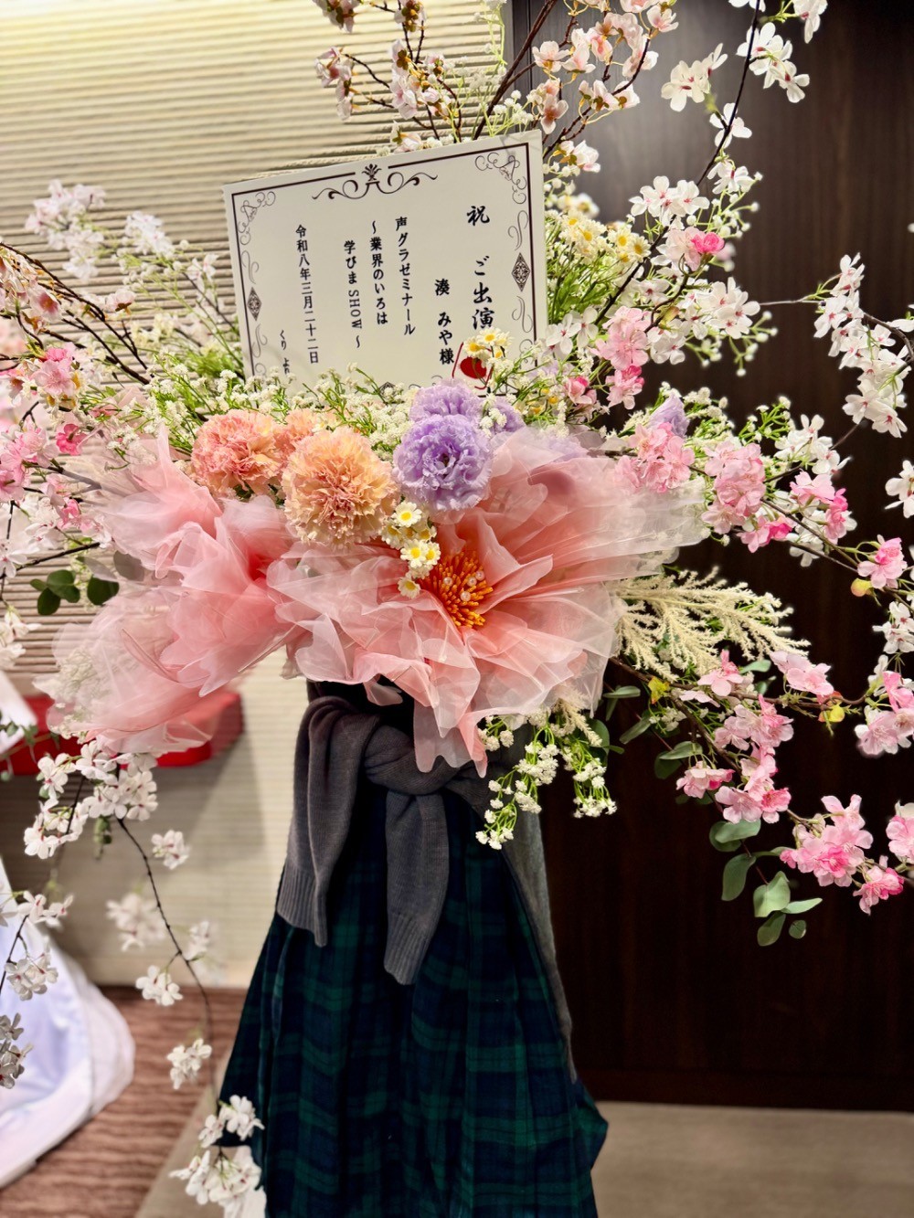 #35,000円-50,000円 #公演・出演祝い #フラワーデザイナーIkuya #スタンド花 #推し花 #東京証券会館ホール #湊みや #声優 #オリジナル立て札 #ジャイアントフラワー #春