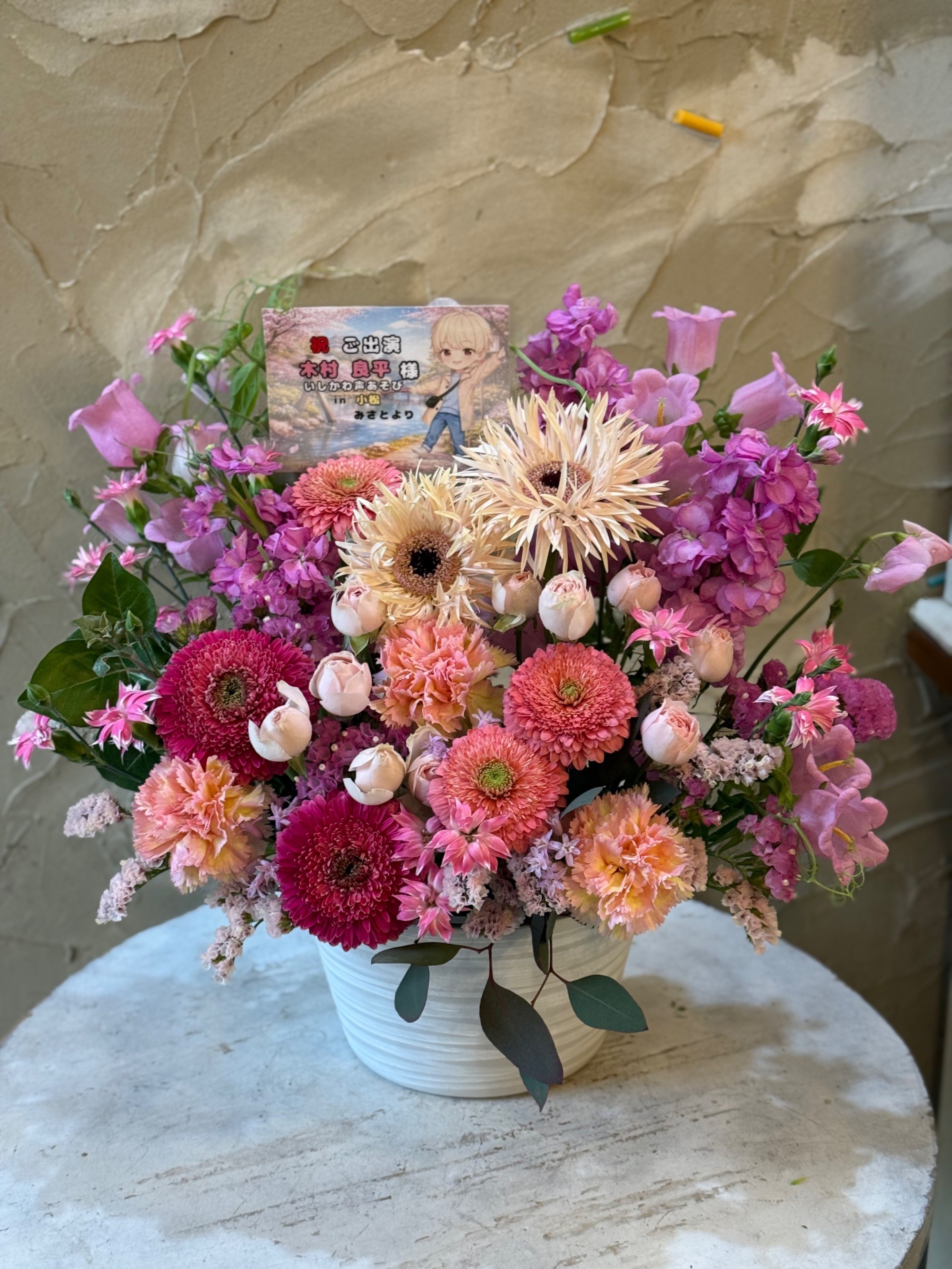 #10,000円 #公演・出演祝い #フラワーデザイナー牧 #ピンク #楽屋花 #推し花 #團十郎芸術劇場うらら #木村良平 #声優 #俳優 #オリジナル立て札