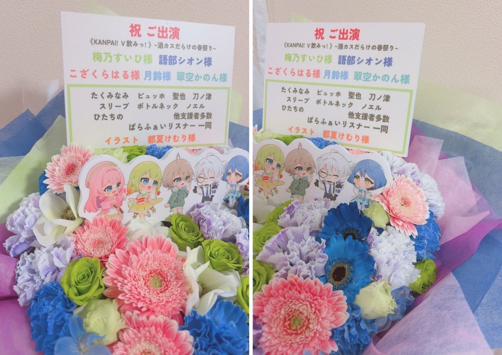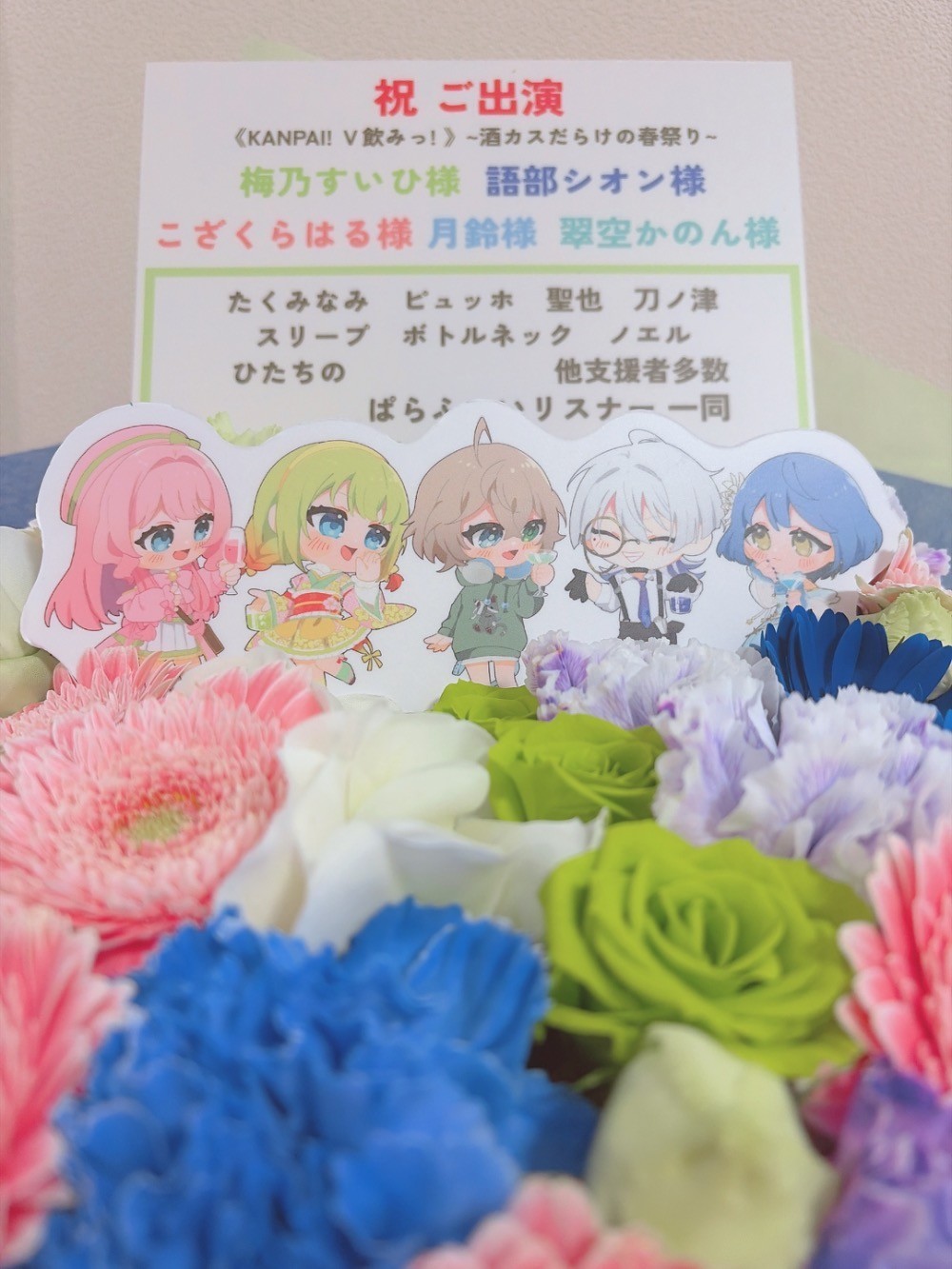 #20,000円-30,000円 #公演・出演祝い #フラワーデザイナー志村 #楽屋花 #推し花 #Bar SHARE TABLE #月鈴 #こざくらはる #翠空かのん #梅乃すいひ #語部シオン #Vtuber #歌手 #オリジナル立て札 #カラフル