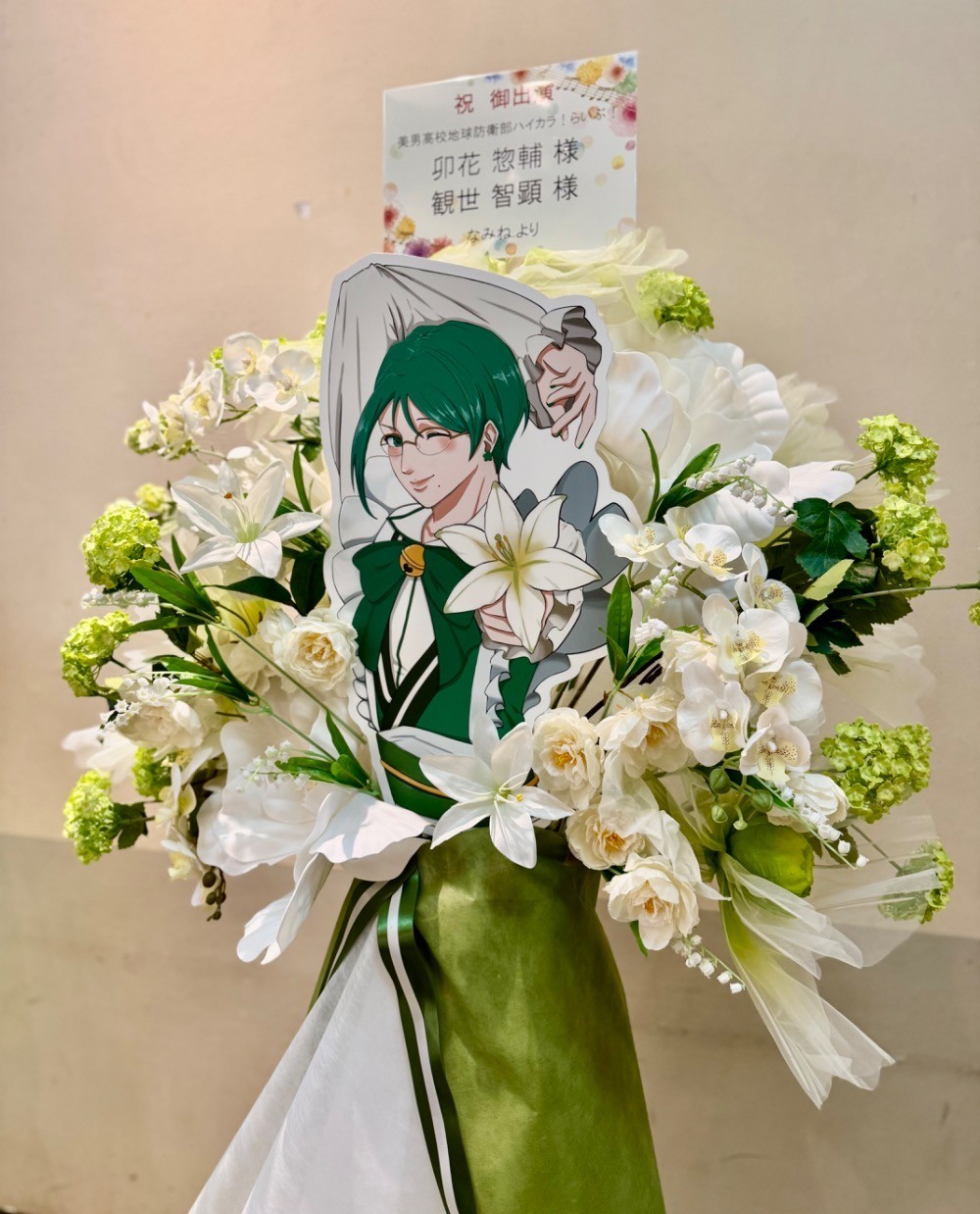 #20,000円-30,000円 #公演・出演祝い #フラワーデザイナーIkuya #白 #スタンド花 #推し花 #科学技術館サイエンスホール #卯花惣輔 #観世智顕 #声優 #オリジナル立て札 #パネル装飾