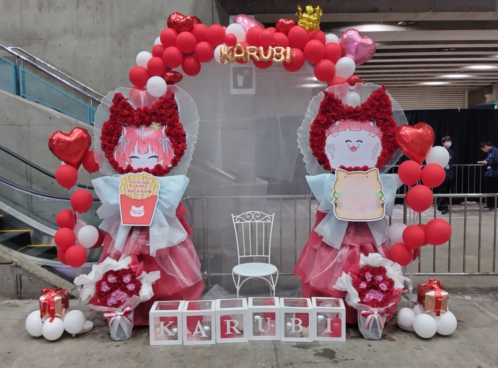 #184,050円 #公演・出演祝い #フラワーデザイナー浅野 #赤 #スタンド花 #推し花 #幕張メッセ # 赤見かるび #Vtuber #バルーン #連結フラスタ #オリジナル立て札 #パネル装飾 #インパクト #ボリューム