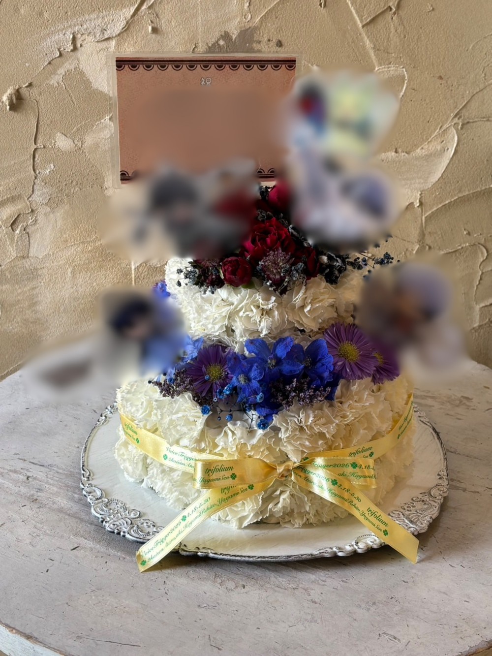 イメージカラーでおつくりしたフラワーケーキ ご出演祝い花・楽屋花