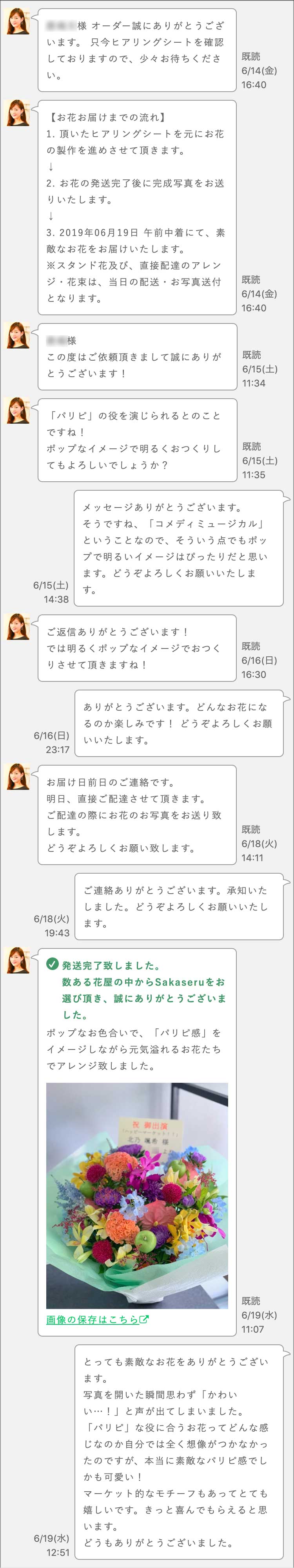また、そのラジオで想い出のあるお花もお願いして入れていただき、とても素敵なお花に仕上げてくださいました。